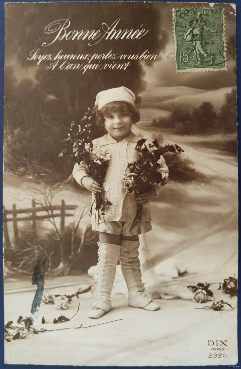 Детская фотооткрытка. С Новым годом! Франция. Начало 20-го века.