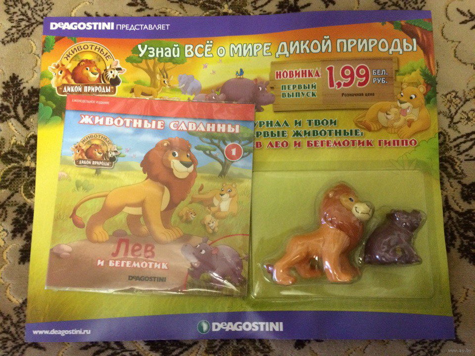 Детская коллекция Животные дикой природы 2018 года. Бел. версия. Номера в наличии: №4-тигр и детеныш панды (без тигра), 5-крокодил и детеныш гориллы, 6-зебра и львица (без зебры), 8-газель и детеныш носорога, 9-гепард и детеныш грифа, 10-панда и детеныш крокодила (без панды), 11-гиена и детеныш броненосца, 12-кенгуру и детеныш лемура, 13-рейнджер и детеныш коалы, 15-сын рейнджера и шимпанзе (без шимпанзе), 16-попугай и детеныш газели, 20-самка страуса, 21-детеныш варана и вторая часть палатки, 22-броненосец и детеныш тигра, 23-самец варана, 24-детеныш страуса и третья часть палатки, 26-гриф и детеныш гиены, 27-коала и четвертая часть палатки, 28-самец шимпанзе, 31-пятая часть палатки, 32-жена рейнджера и детеныш суриката, 34-пума и детеныш муравьеда (без пумы), 36-анаконда, 38-пума и часть акации, 40-павлин и часть акации, 50-крокодилица и детеныш пумы. Все выпуски с журналами. Цена за один выпуск (где недобор животных-цена на половину). Дружу с почтой.