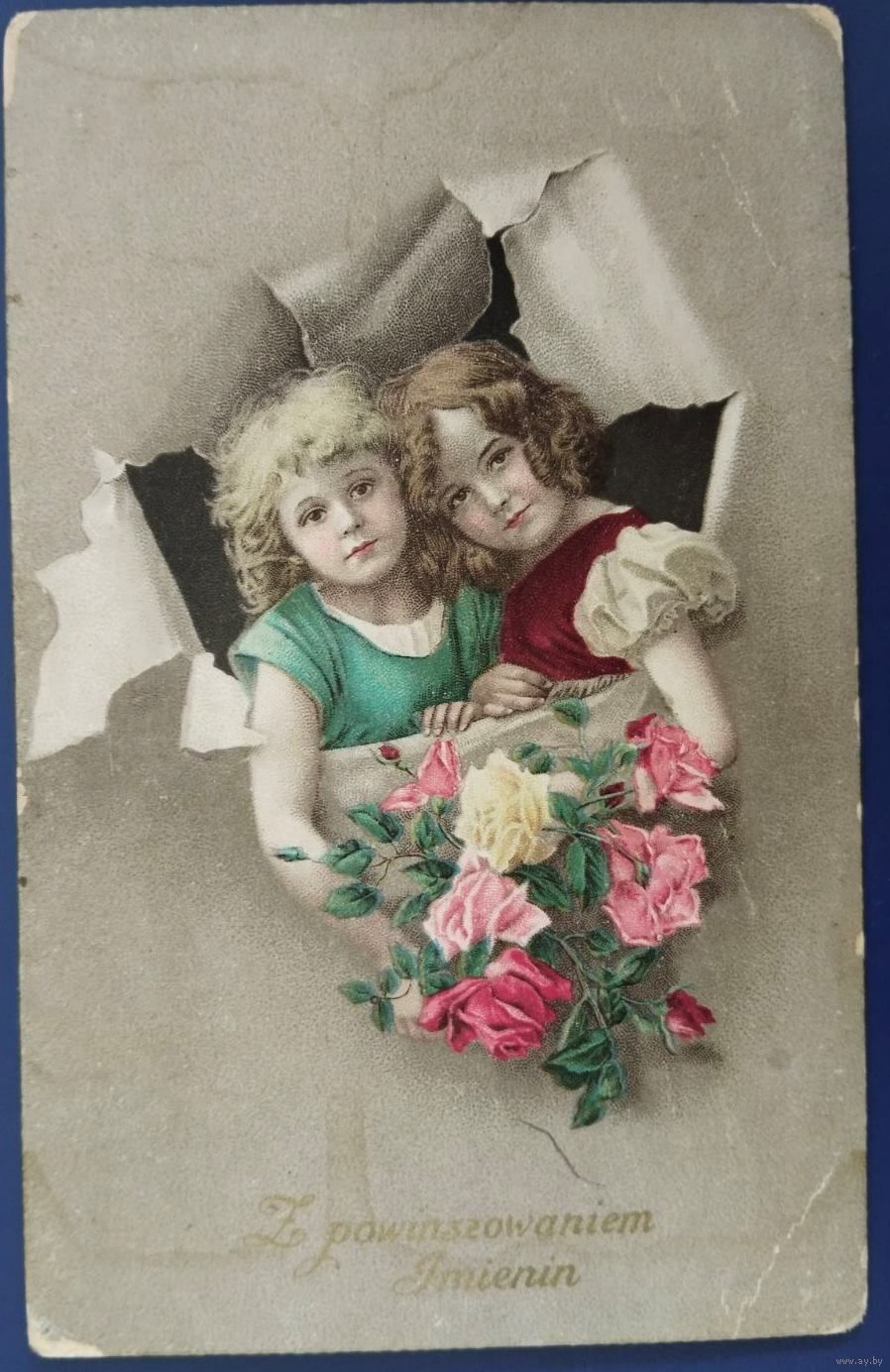 Детская поздравительная открытка с именинами. Польша, периода Австро-Венгрии. Начало 20-го века.