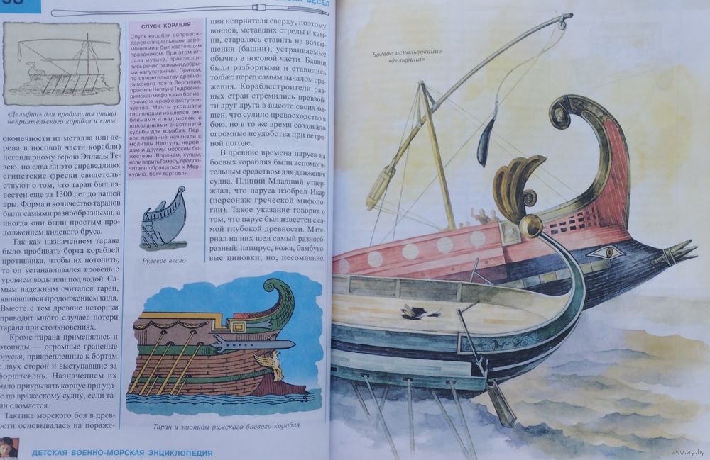 Большой энциклопедический формат. Тираж 20000 экз. 592 стр. Появление этой замечательной книги на прилавках магазинов стало настоящим событием для всех любителей военной истории, а фанаты военно-морского флота просто повизгивали от восторга. После выхода настоящей книги, отзывы читателей и рецензии специалистов свидетельствуют о том, что появление этого издания стало событием не только для юных, но и для взрослых читателей в нашей стране и за рубежом. По многочисленным мнениям, таких книг, столь полно и компетентно, но вместе с тем популярно рассказывающих об истории военно-морского флота, еще не было. Здесь показана история корабля; от гребного флота Древнего мира до сверхдредноутов времен Второй мировой войны, рассказывается о великих флотоводцах, кораблестроителях и мореплавателях всех эпох и народов, об открытиях, изменявших конструкцию боевых кораблей и влиявших на развитие искусства ведения морского боя. Занимательный текст об истории военно-морского дела дополняют многочисленные цветные иллюстрации, карты и схемы. Человек, внимательно прочитавший эту книгу, уже не перепутает грот-марсель с крюйс-бом-брамселем и кливер с триселем, узнает чем линейный крейсер отличается от линкора и почему он стоит намного дороже, чем линкор. Здесь же можно узнать о всех крупных морских сражениях с древнейших времен до Второй мировой войны. И, конечно, большое внимание уделено героическому боевому пути и славным традициям Российского Военно-морского флота.