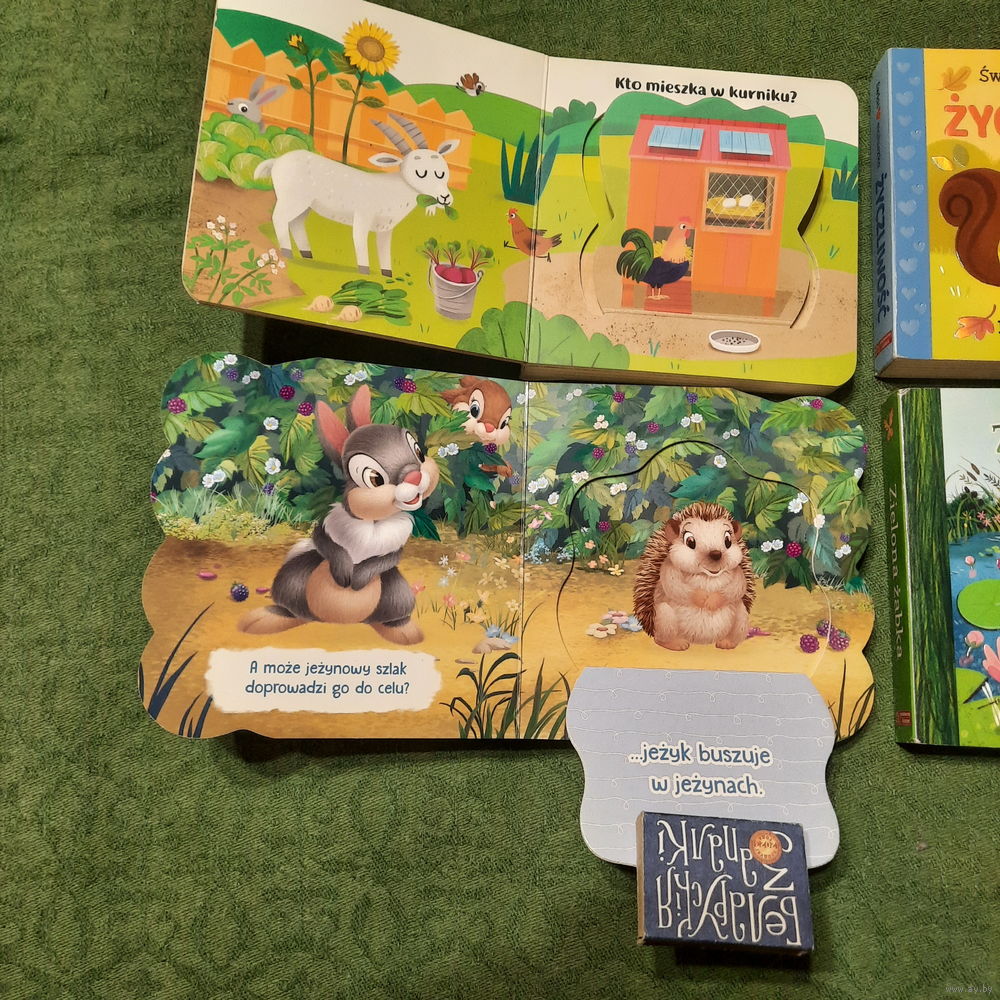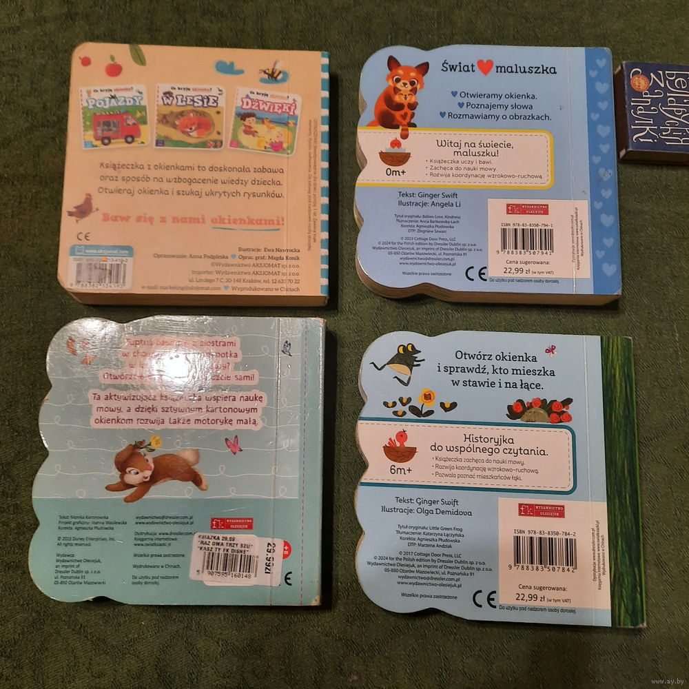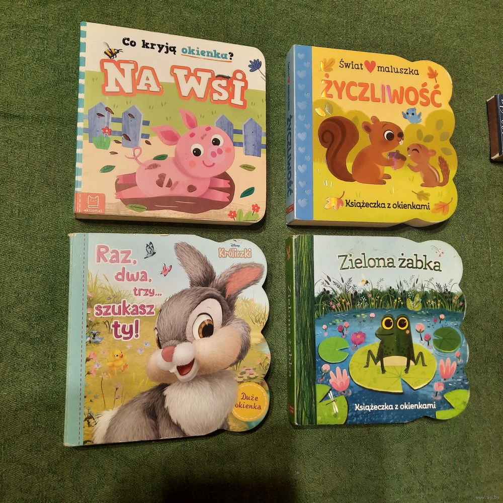 Детские книжки с окошками: В деревне; Доброта; Раз, два, три, ищешь ты!; Зелёная жабка. Варшава-Краков. 2023-2024гг. На польском языке.