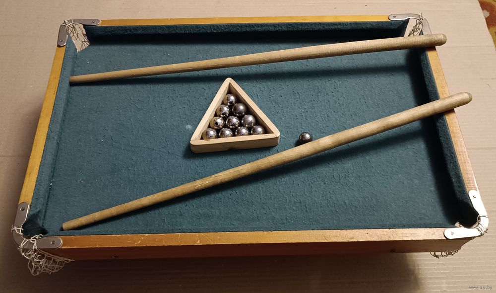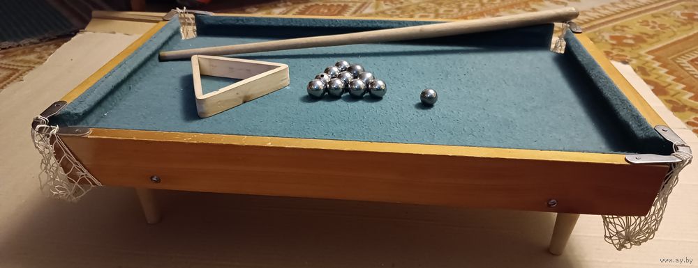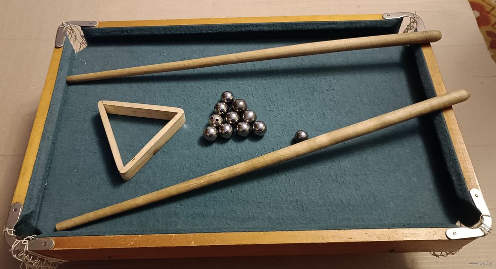 Оригинал. СССР. Редкий. Состояние на фото, проблема с ножками и боковинами, некоторые шары не родные. Размер 53 на 35 см. Кий 53 см. Доставку оплачивает покупатель при получении лота на Белпочте. Полная предоплата до отправки лота по почте. Смотрите и другие мои лоты, выставленно много интересных лотов с 1 рубля! Качественную упаковку гарантирую! Отправка Белпочтой. Выход на связь в течении трёх дней, выкуп лота в течении семи дней, далее черный список и отрицательный отзыв! Делайте обдуманно Ваши ставки, прежде чем покупать лот, хорошо подумайте, нужен ли он Вам! Ставки не отменяю! Купленный товар возврату не подлежит.Спасибо за проявленный интерес к данному лоту! Всем удачи в торгах! Подписывайтесь на мои лоты, постоянно выставляю много интересных лотов с 1 рубля!