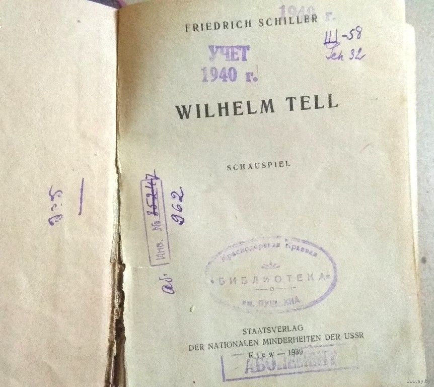 Deutsch (Friedrich Schiller "Wilhelm Tell"). Немецкий язык (Фридрих Шиллер "Вильгельм Телль"). 1939 год
