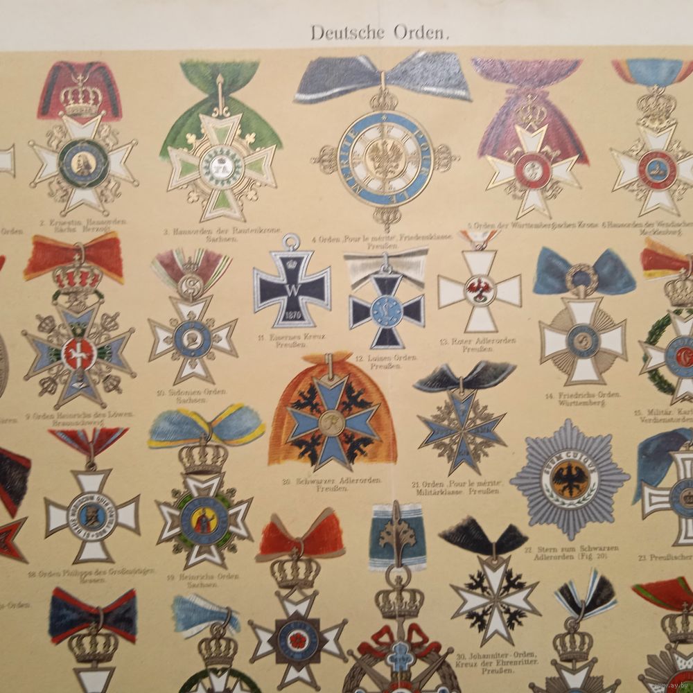Deutsche Orden.Литография Германия. Гравюра 19в. 30x24см. РАСПРОДАЖА КОЛЛЕКЦИИ.