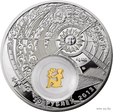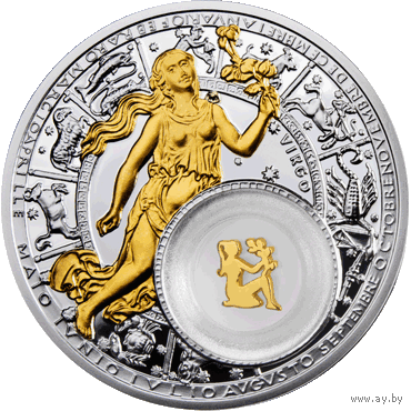 | Качество: "пруф", со вставкой (прозрачная капсула с находящимся в ней подвижным серебряным с позолотой филигранным элементом в виде Девы). | |