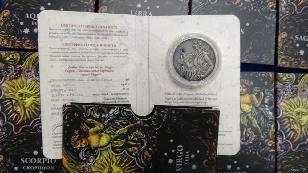 | Банковское . качество: "анциркулейтед", Монета оксидирована. Вставка: кристаллы Сваровски. Капсула не вскрывалась . В блистере . | |