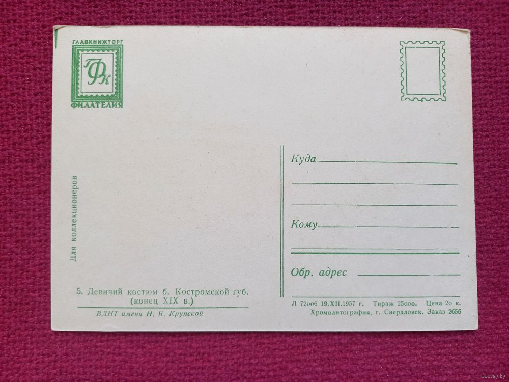 Девичий костюм Костромской губернии. 1957 г. Чистая.