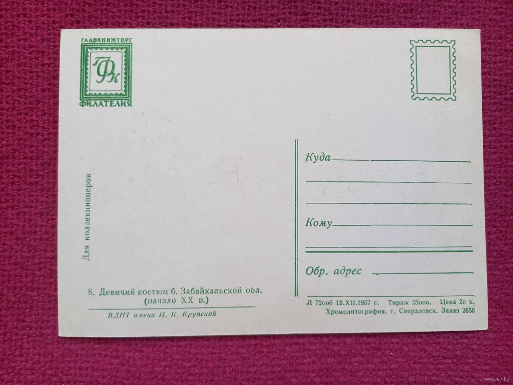 Девичий костюм Забайкальская область. 1957 г. Чистая.