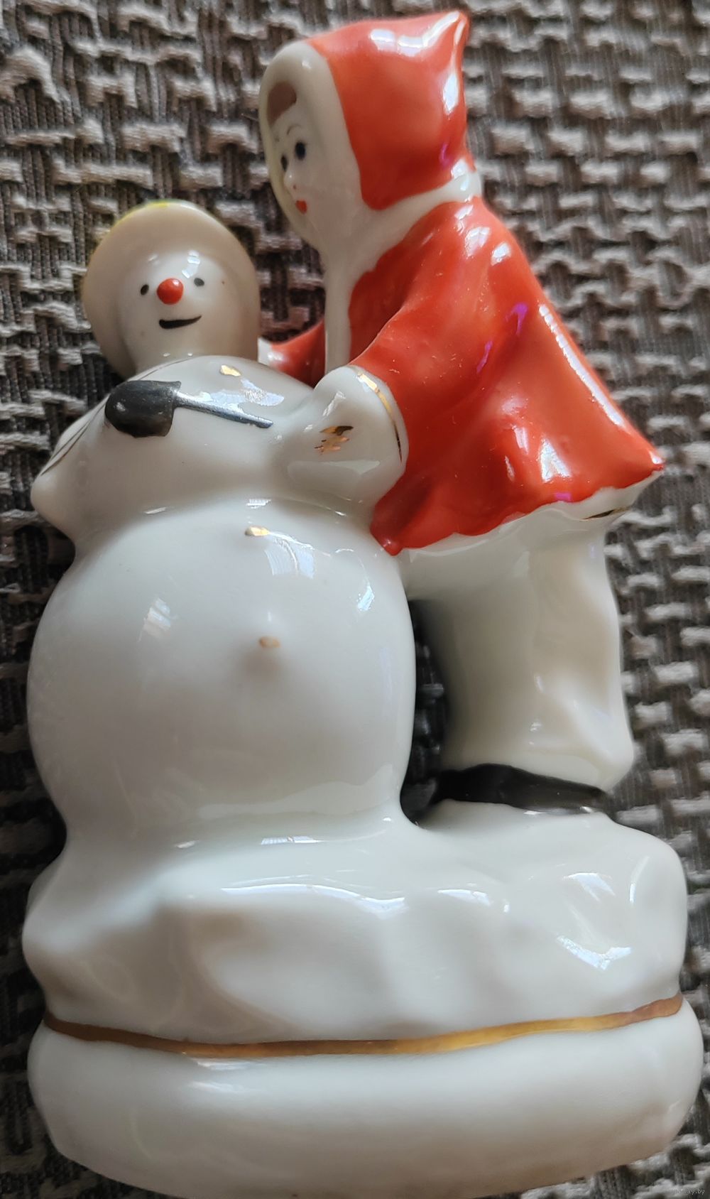 Девочка лепит снеговика.