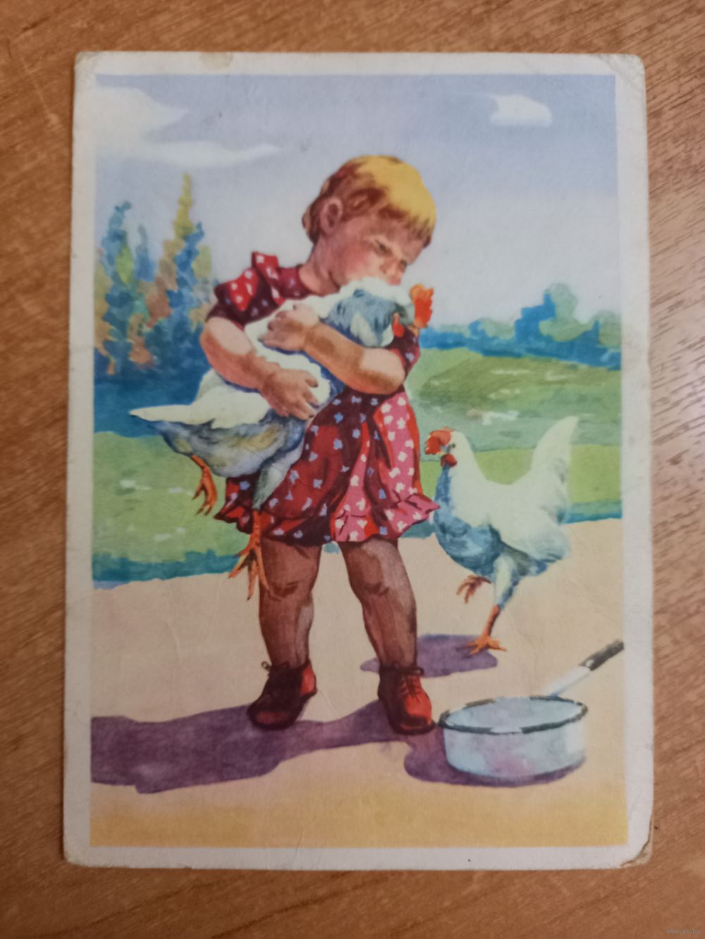 Девочка с петухом. Худ. Адрианова 1961 юная птичница