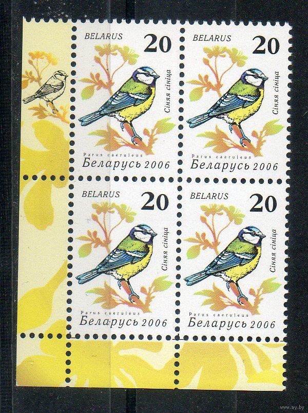 Девятый стандартный выпуск "Птицы сада" Беларусь 2006 год (649) 1 марка в квартблоке (мелованная бумага)