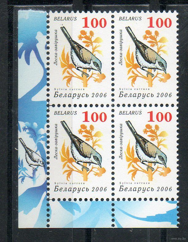 Девятый стандартный выпуск "Птицы сада" Беларусь 2006 год (652) 1 марка в квартблоке (мелованная бумага)