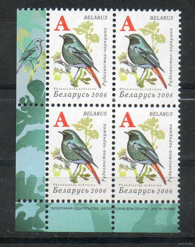 Девятый стандартный выпуск "Птицы сада" Беларусь 2006 год (657) 1 марка в квартблоке (простая бумага)