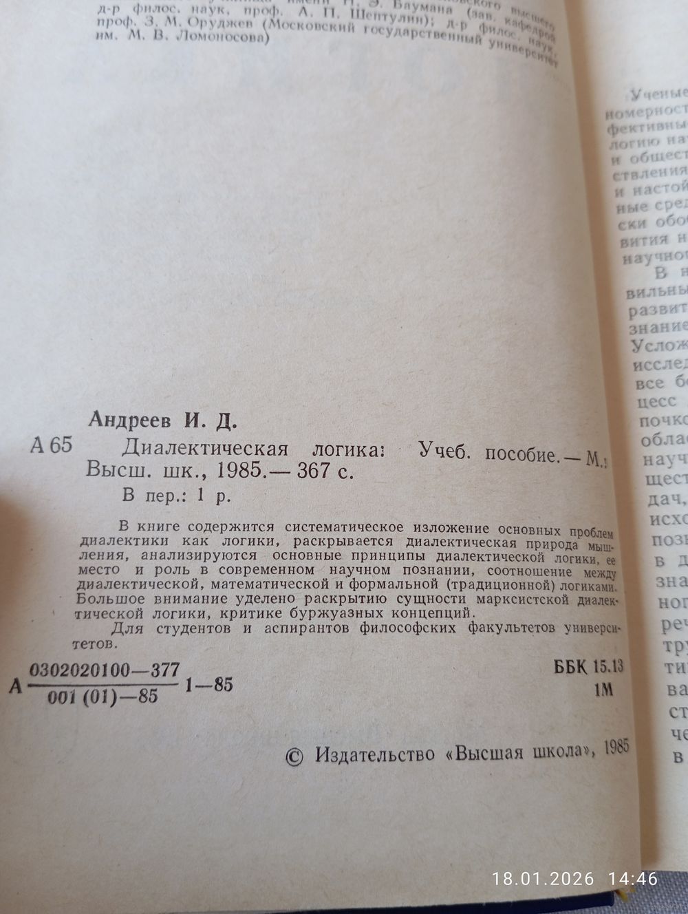 Диалектическая логика. Андреев И. М. Высшая школа 1985. Редкая. В прекрасном состоянии, тв переплет. 367 с. Возможность отправки Белпочтой, полная предоплата на карту Беларусбанк