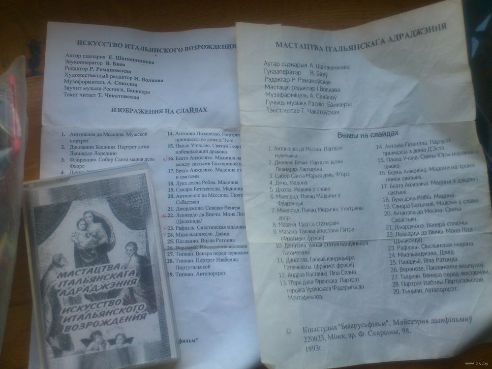 ДИАПОЗИТИВЫ , СЛАЙДЫ ИССКУСТВО ИТАЛЬЯНСКОГО ВОЗРОЖДЕНИЯ , КОМПЛЕКТ