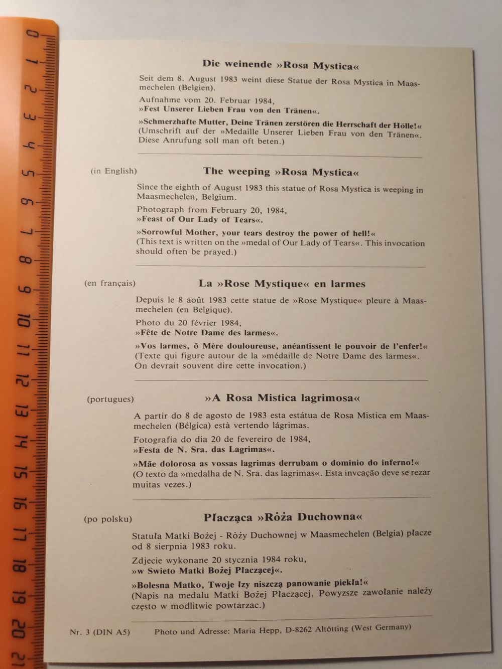 Образ Розы Мистической основан на явлениях Богородицы медсестре Пьерине Джилли в итальянском городке Монтикьяри в 1947 году.