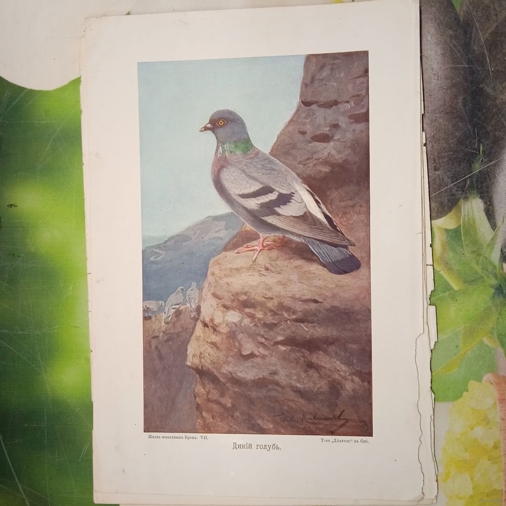 Дикий голубь. Литография СПБ. Энциклопедическая гравюра конец 19века 25х17см. РАСПРОДАЖА КОЛЛЕКЦИИ.