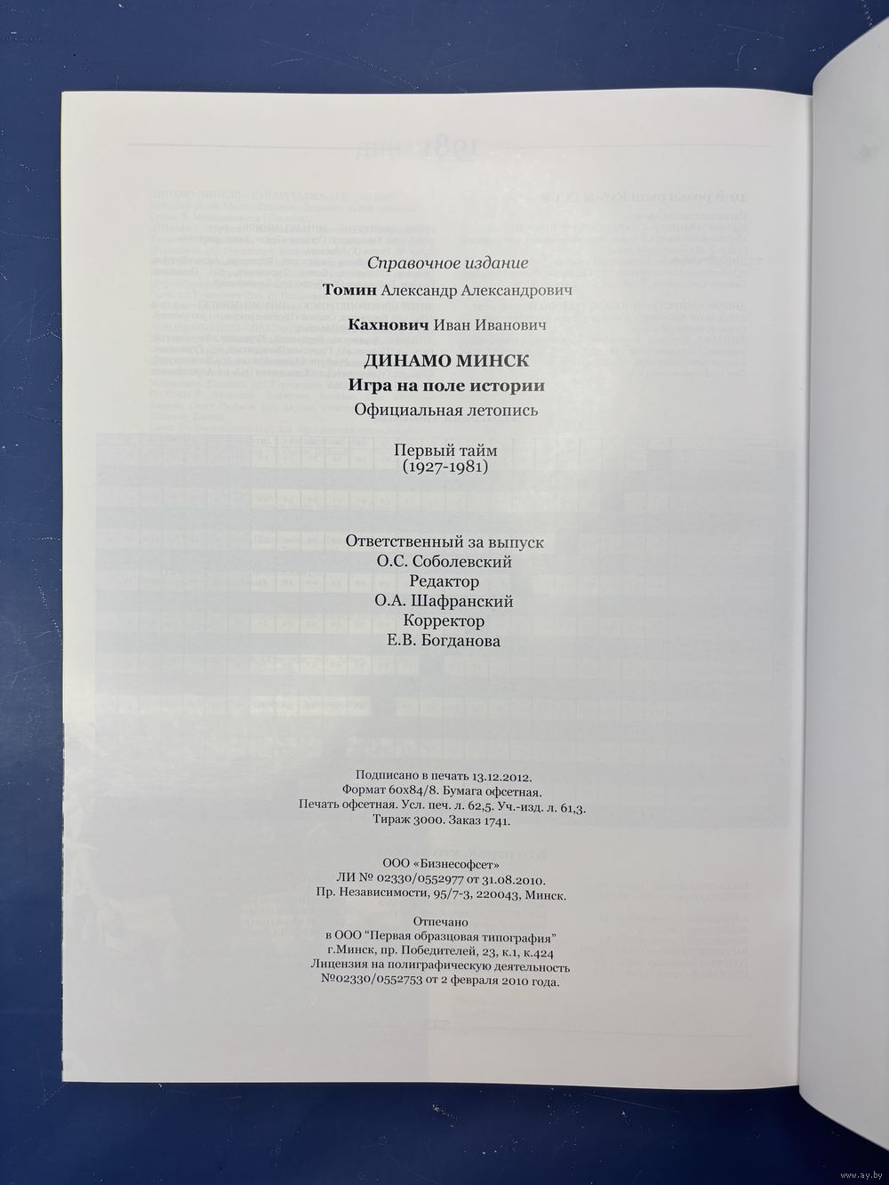 Издание рассказывает об истории минской команды «Динамо» от времени ее создания до настоящего времени. Через призму лет прослеживается путь легендарного футбольного клуба. Помимо хронологии событий, биографий футболистов и тренеров, оставивших наиболее заметный след в истории столичной дружины, книга содержит более тысячи уникальных иллюстраций, множество интересных фактов и цифр. По сути, это первая попытка обобщить 85-летнюю историю команды, что делает издание уникальным в своем роде.
