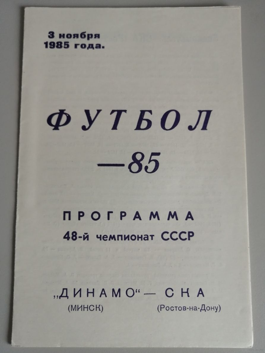 ДИНАМО Минск - СКА Ростов-на-Дону (3.11.1985)