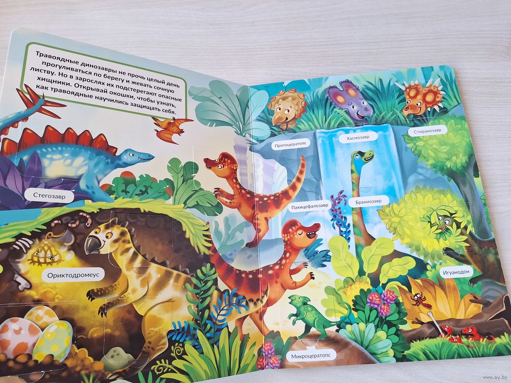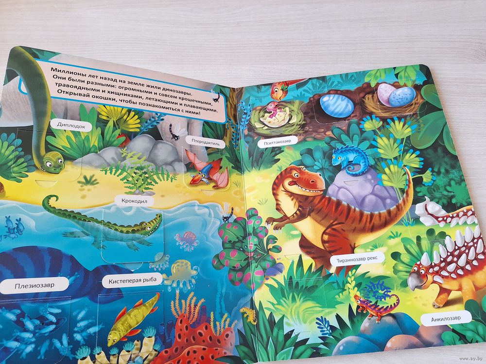 Динозавры - книжка с окошками - КАК НОВАЯ - малыши открывают мир - большой формат