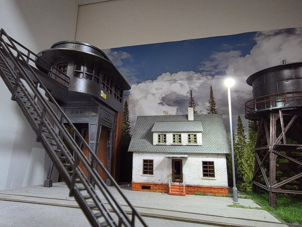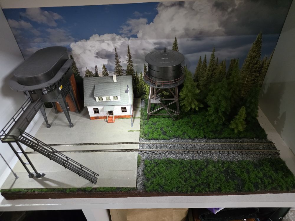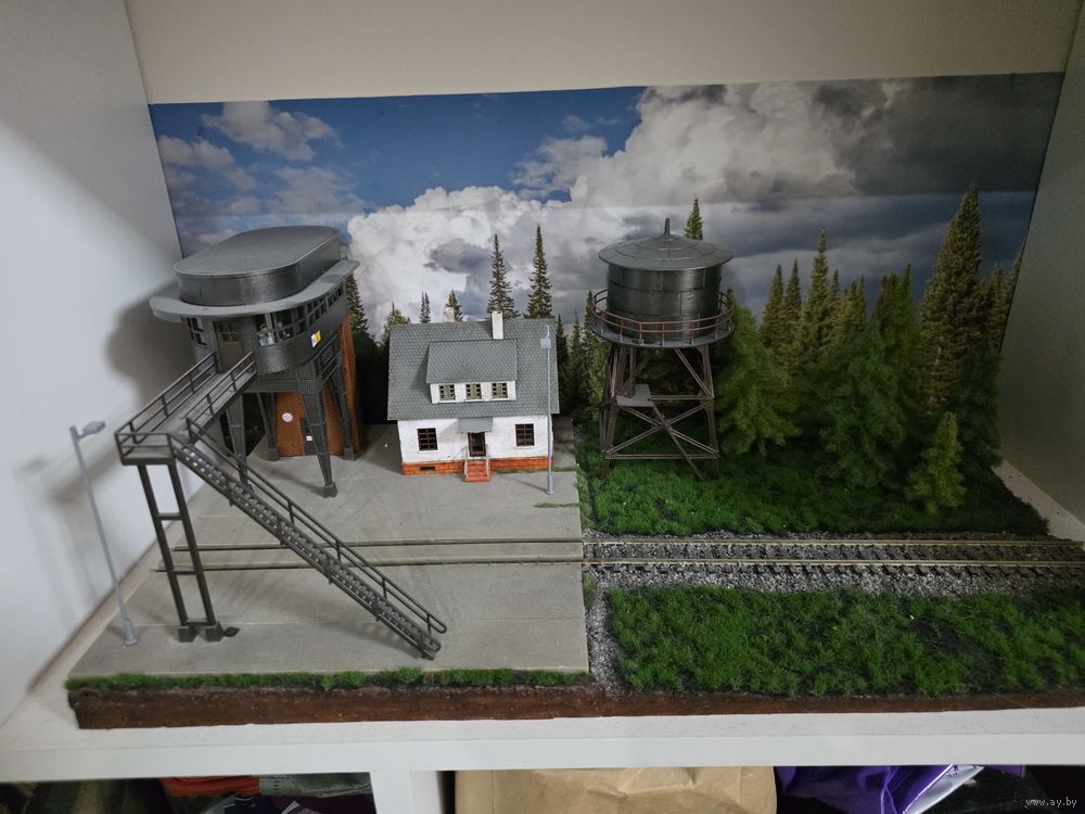 Диорама железнодорожная. Масштаб 1:87. Свет в фонарях. Фон в комплекте. Размер 25х49