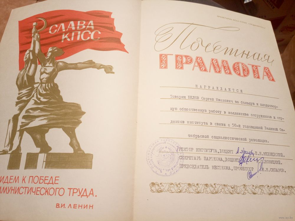 Диплом-Грамота-Свидетельство БССР.