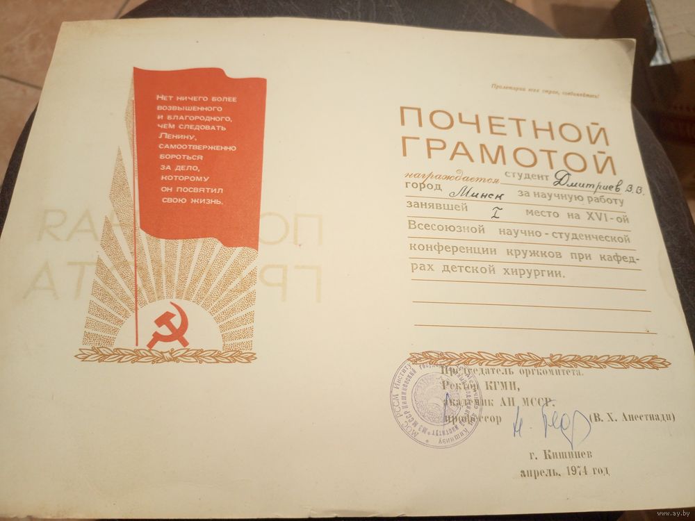 Диплом-Грамота-Свидетельство БССР.