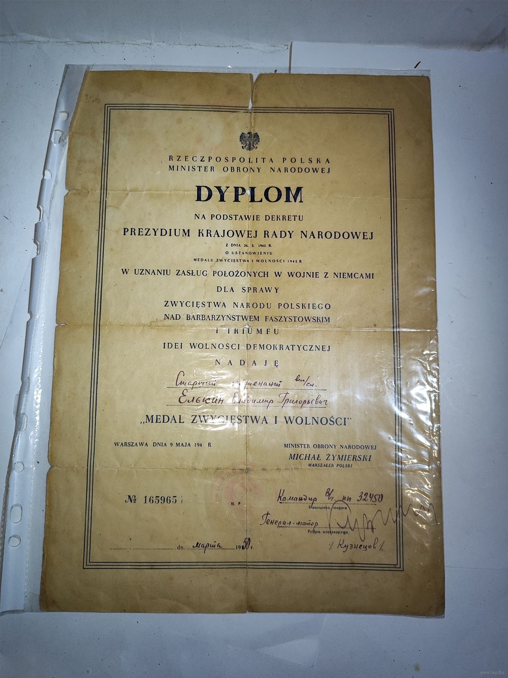 Нечастый. Выдан в 1950 г.(а не в 1946 г). Есть небольшие надрывы по бокам в центре и сверху. Состояние на фото.