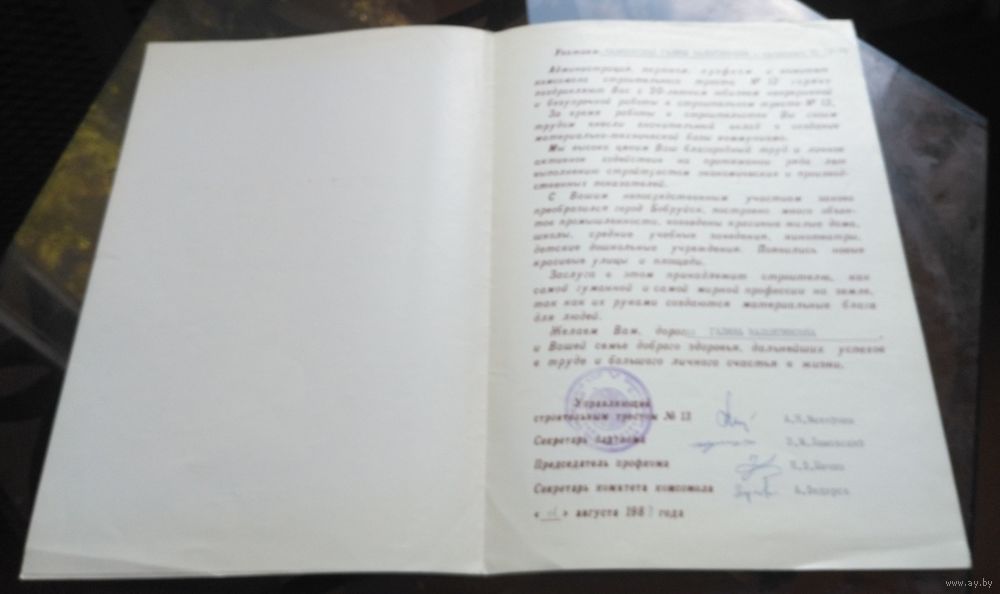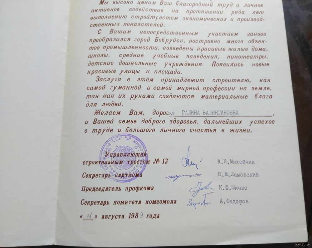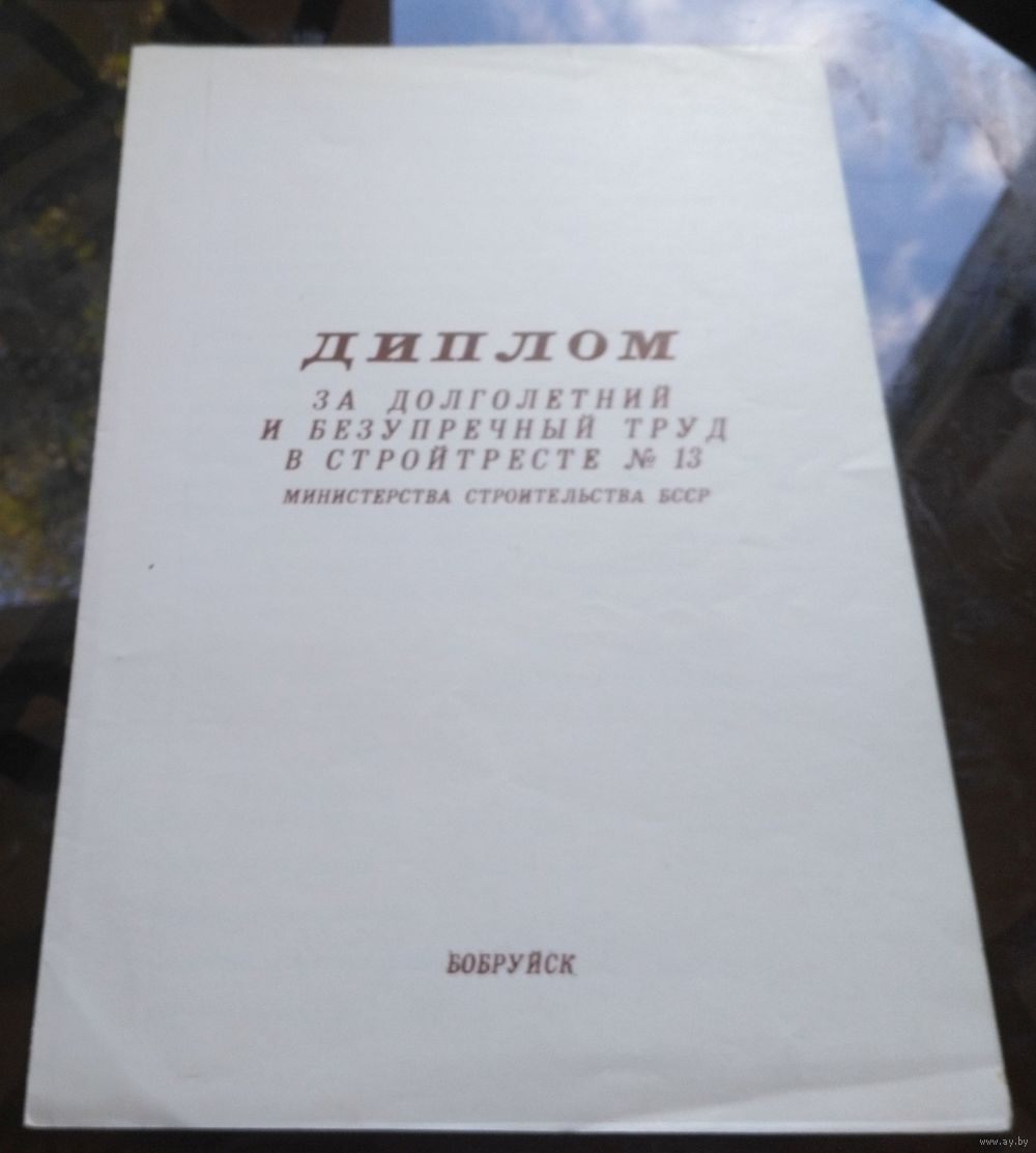 Диплом Министерство строительства БССР Бобруйск Стройтрест 13