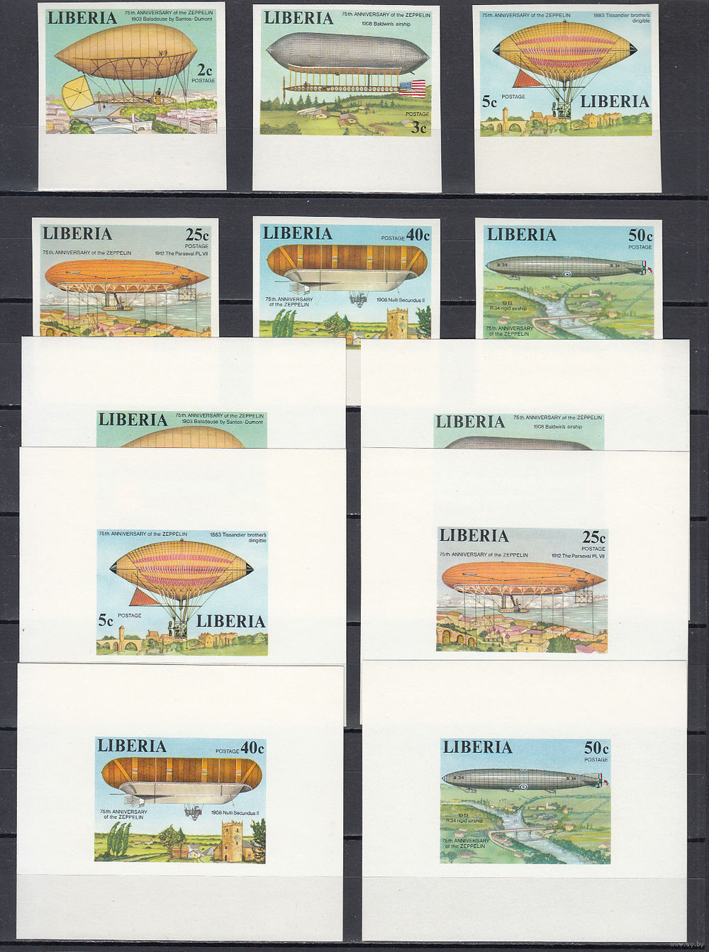 Дирижабли. Либерия. 1978. 6 марок и 6 блоков б/з. Michel N 1054-1059, бл89 (28,0 е)
