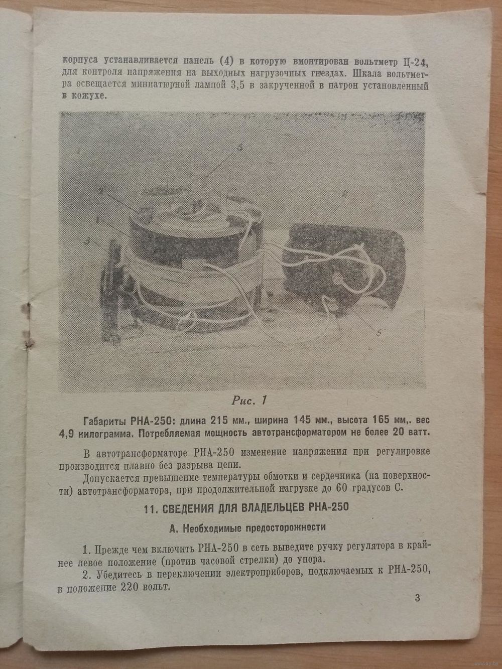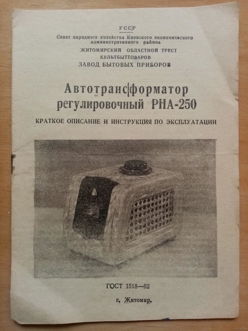 Для автотрансформатора РНА-250 описание и инструкция по эксплуатации