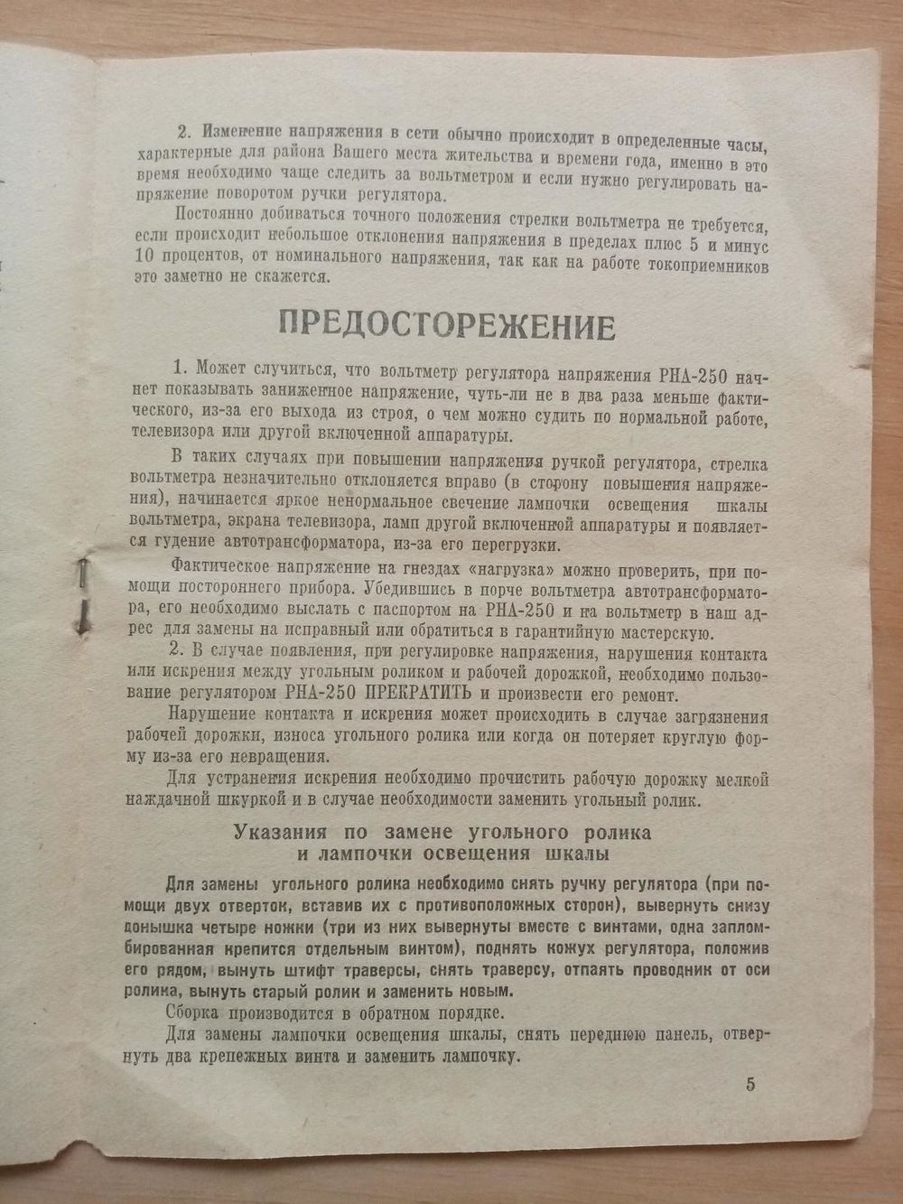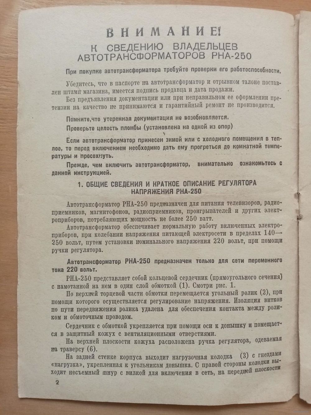 Для автотрансформатора РНА-250 описание и инструкция по эксплуатации