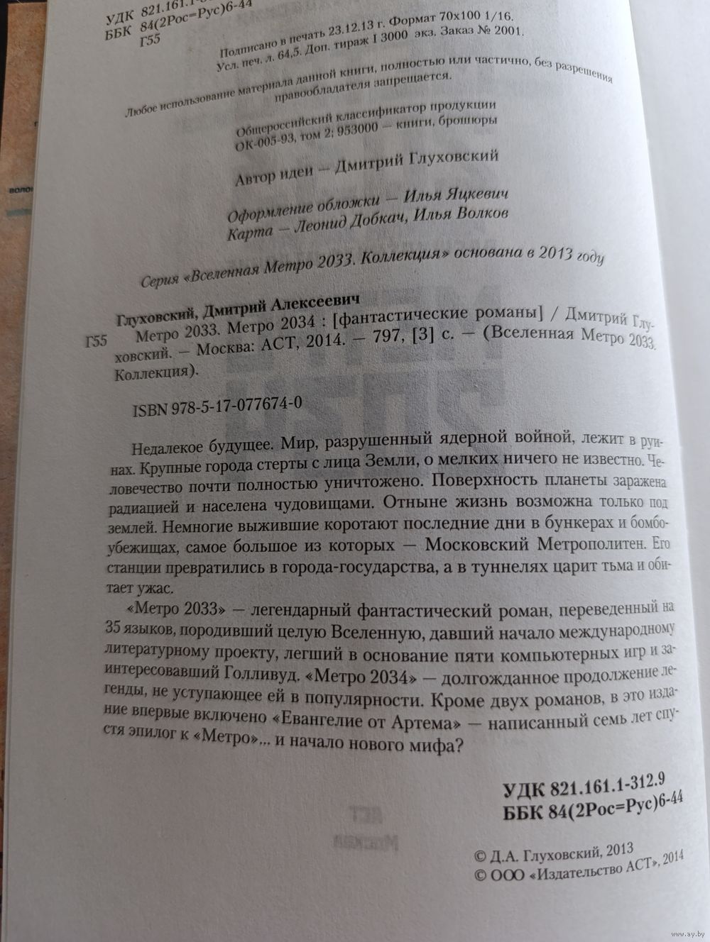 Коллекционное издание дилогии Глуховского в одной книге, твердая стереообложка. Включены романы "Метро 2033", "Метро 2034", "Евангелие от Артёма".