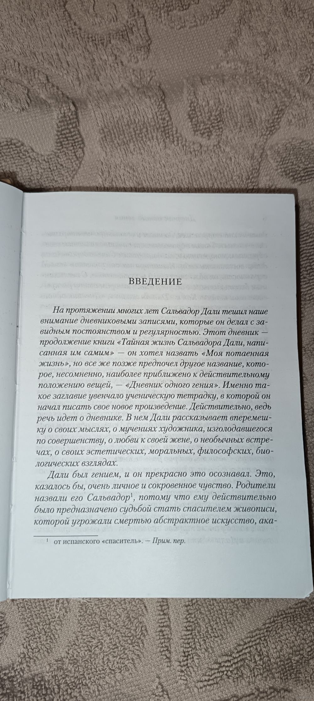 Дали сам пишет в прологе, что его произведение — это первый дневник, написанный гением, и книга призвана доказать, что повседневность гения отличается от всего, что происходит с остальной частью рода человеческого, и совершенно не похожа на повседневность обычного человека. Он подробно описывает свою личную жизнь, отношения с окружающими его людьми, а также комментирует события, современником которых он был.