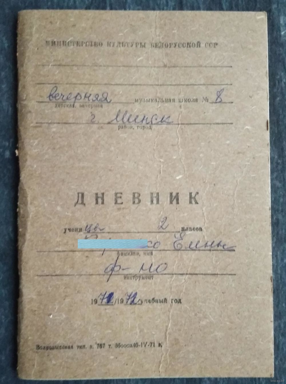 Дневник ученицы 2 класса музыкальной школы. 1972 г.