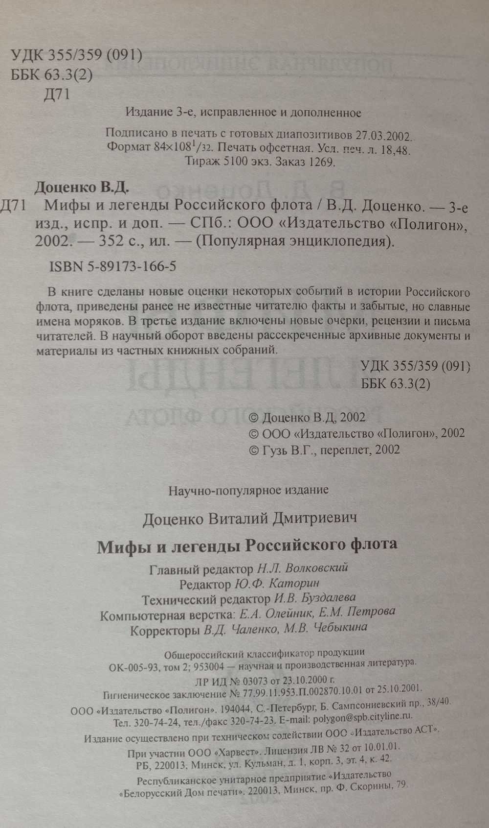 Доценко. Мифы и легенды российского флота. Изд. Полигон 2002г. 352 страницы.