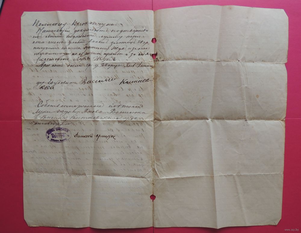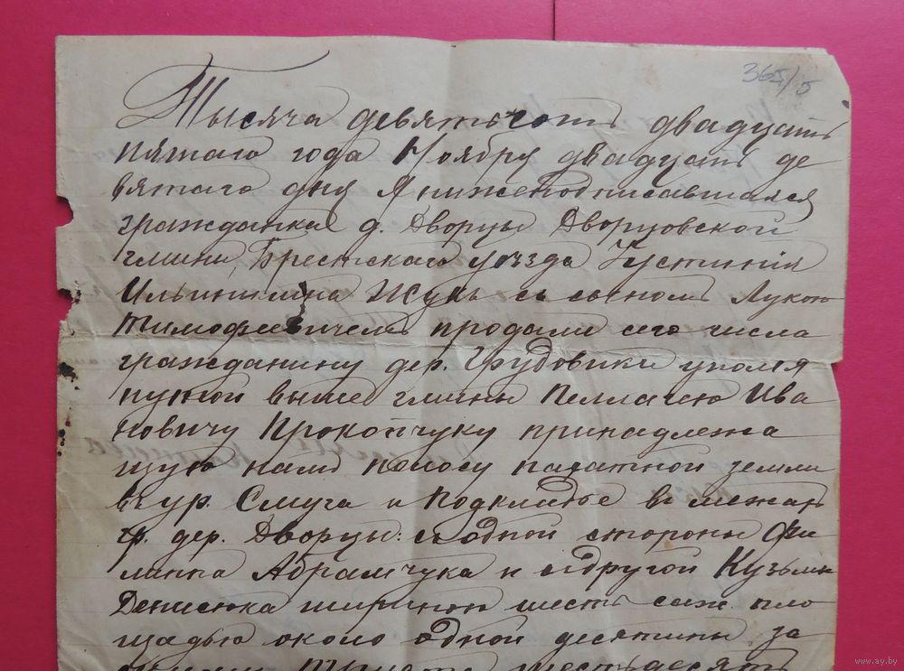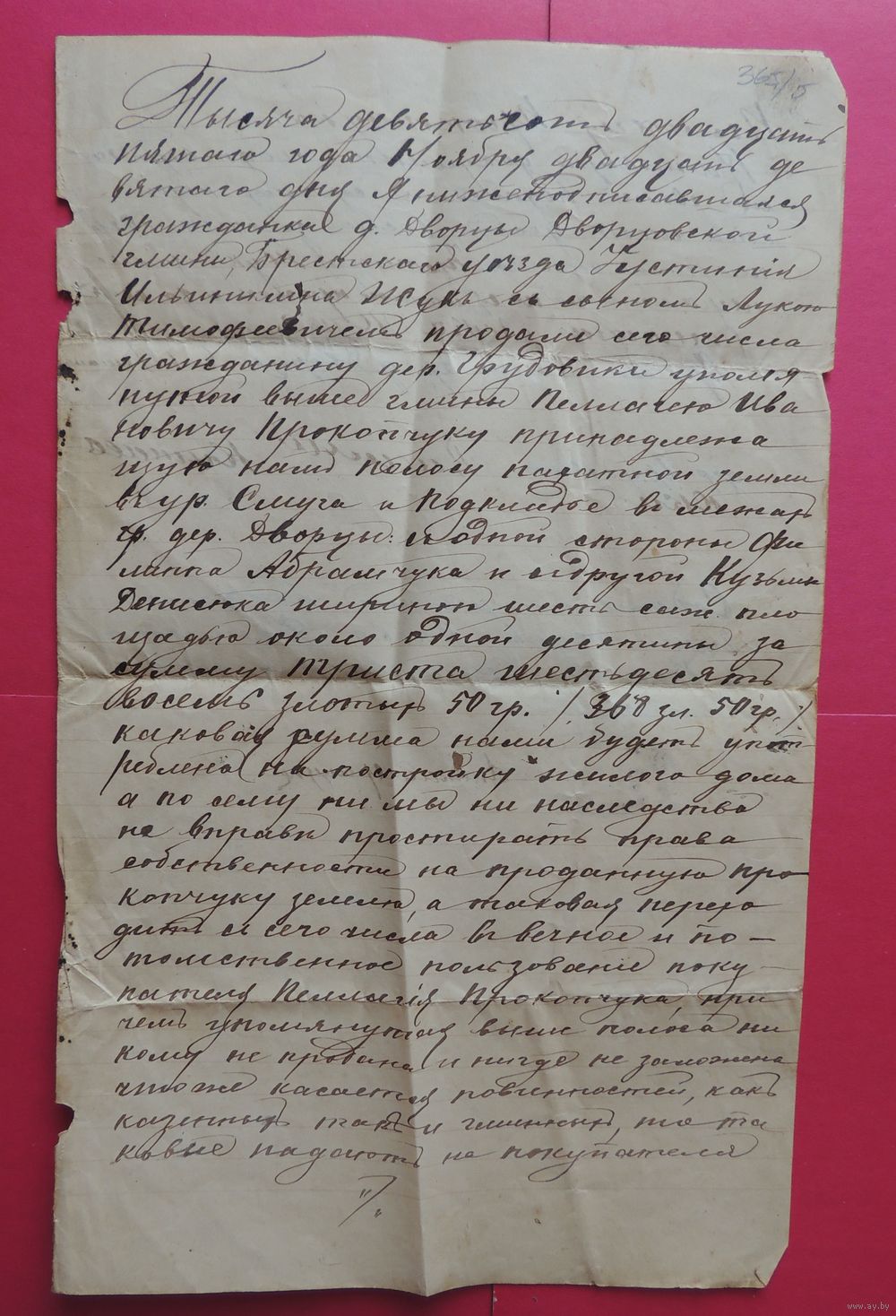 Договор о продаже земли, д. Дворцы, Дворцовской гмини, Брестского уезда, 1925 г.