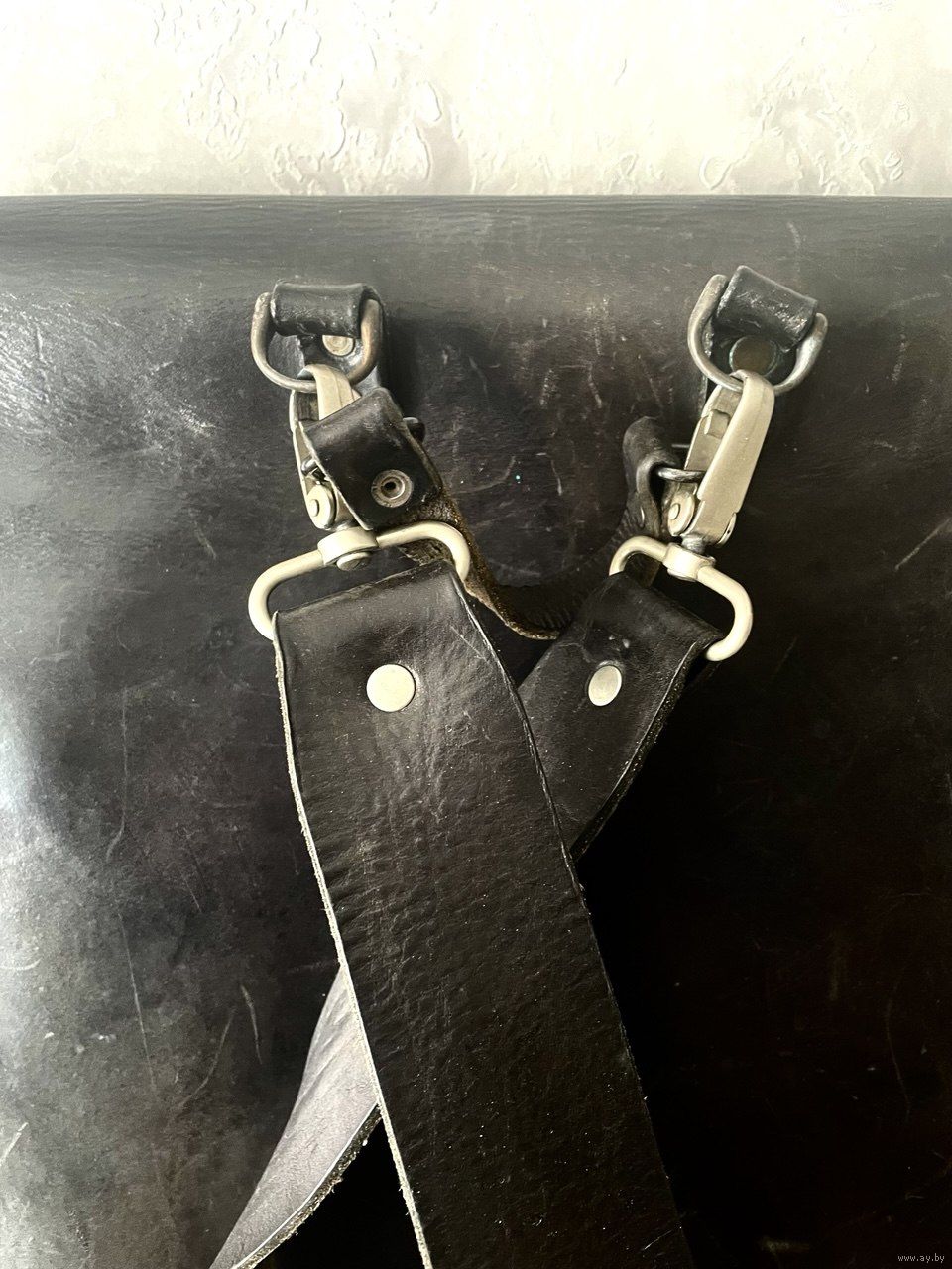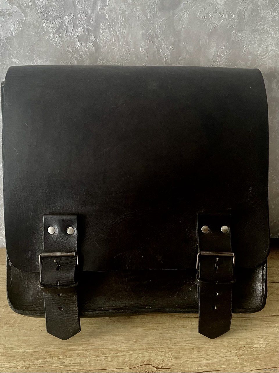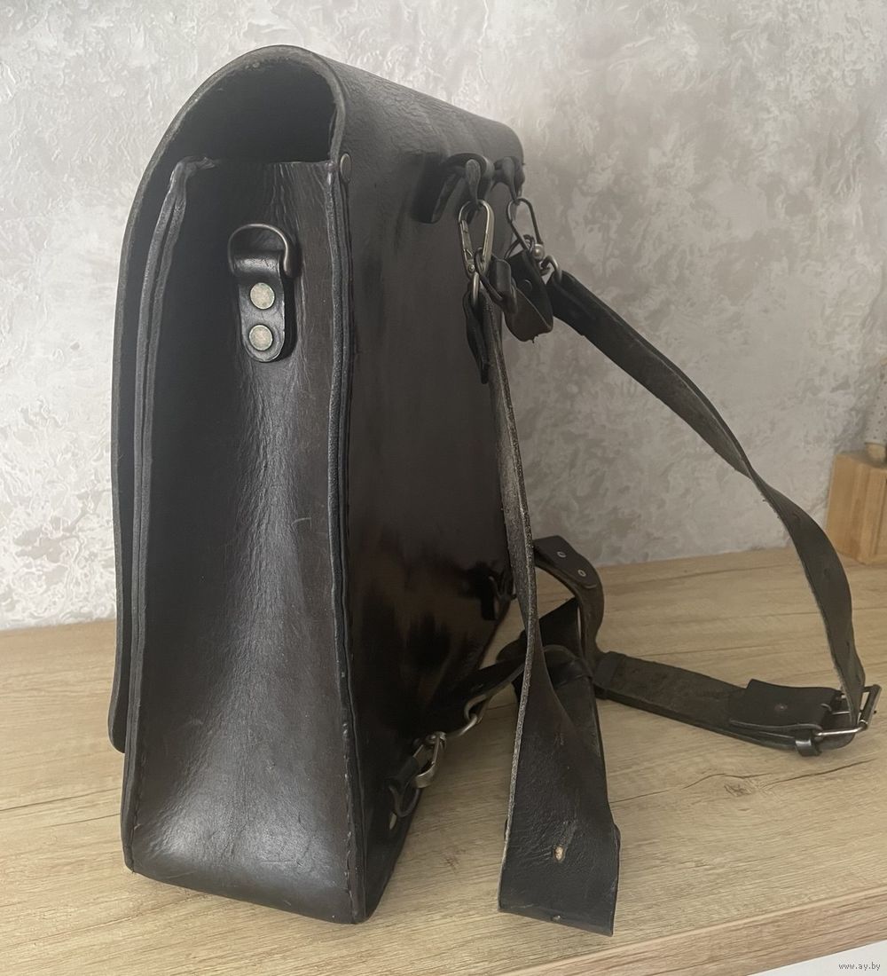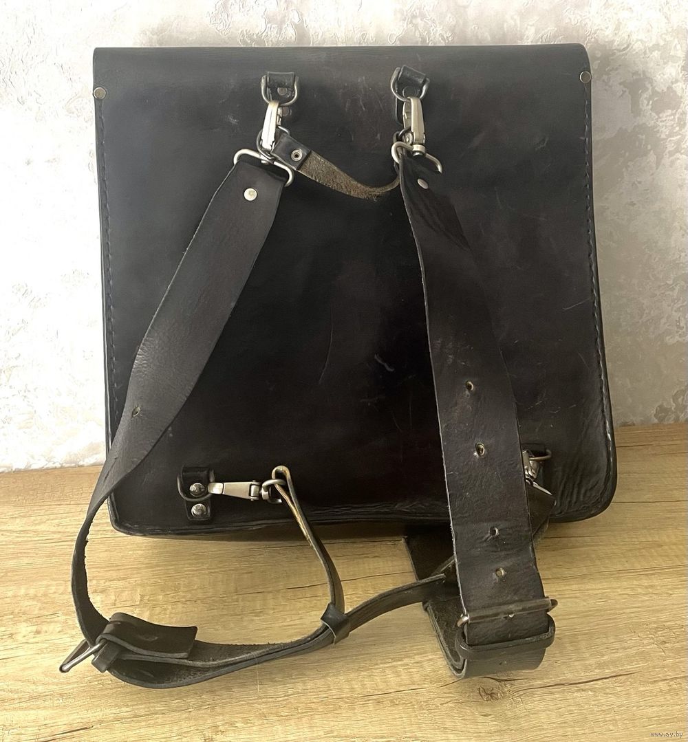 Мужской, брутальный черный ранец из чепрака (толстая воловья шкура). Размер: высота 37см, ширина 35см, глубина 10см. Объем 3 полтора литровых пластиковых бутылки.