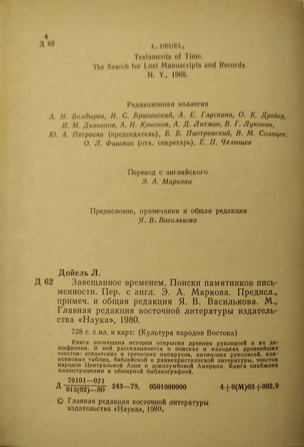 Дойель Л. "Завещенное временем. Поиски памятников письменности"