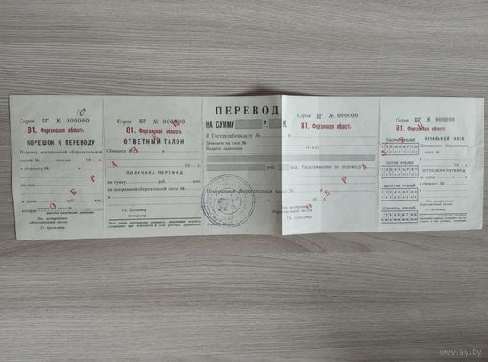 Документ на перевод Ферганская область,образец 19....г,СССР.