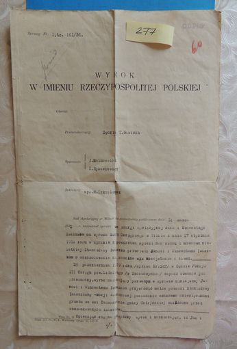 Документ, старая Польша "Суд опеляционный в Вильно по приговору 1934 г."