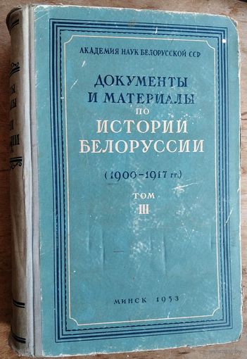 Документы и материалы по истории Белоруссии (1900 - 1917 гг.). под редакцией В. Н. Перцева и др. Минск. Издательство Академии наук БССР. 1953 г. 1018 с. Твердый переплет. Увелич. формат.