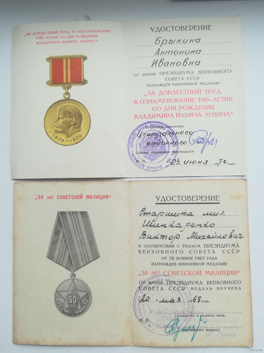 Документы к медалям.