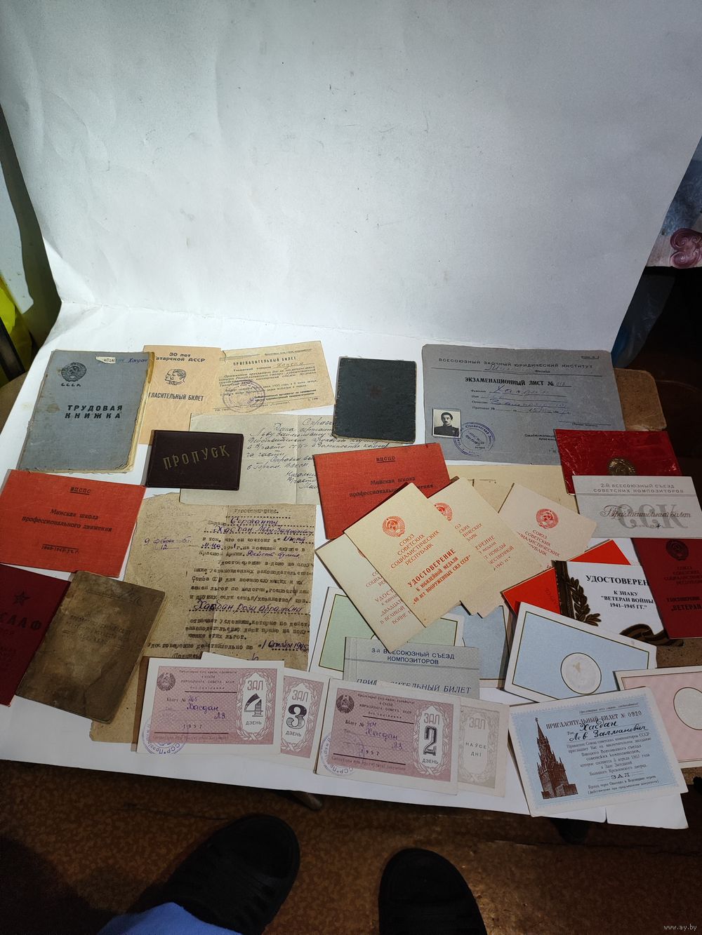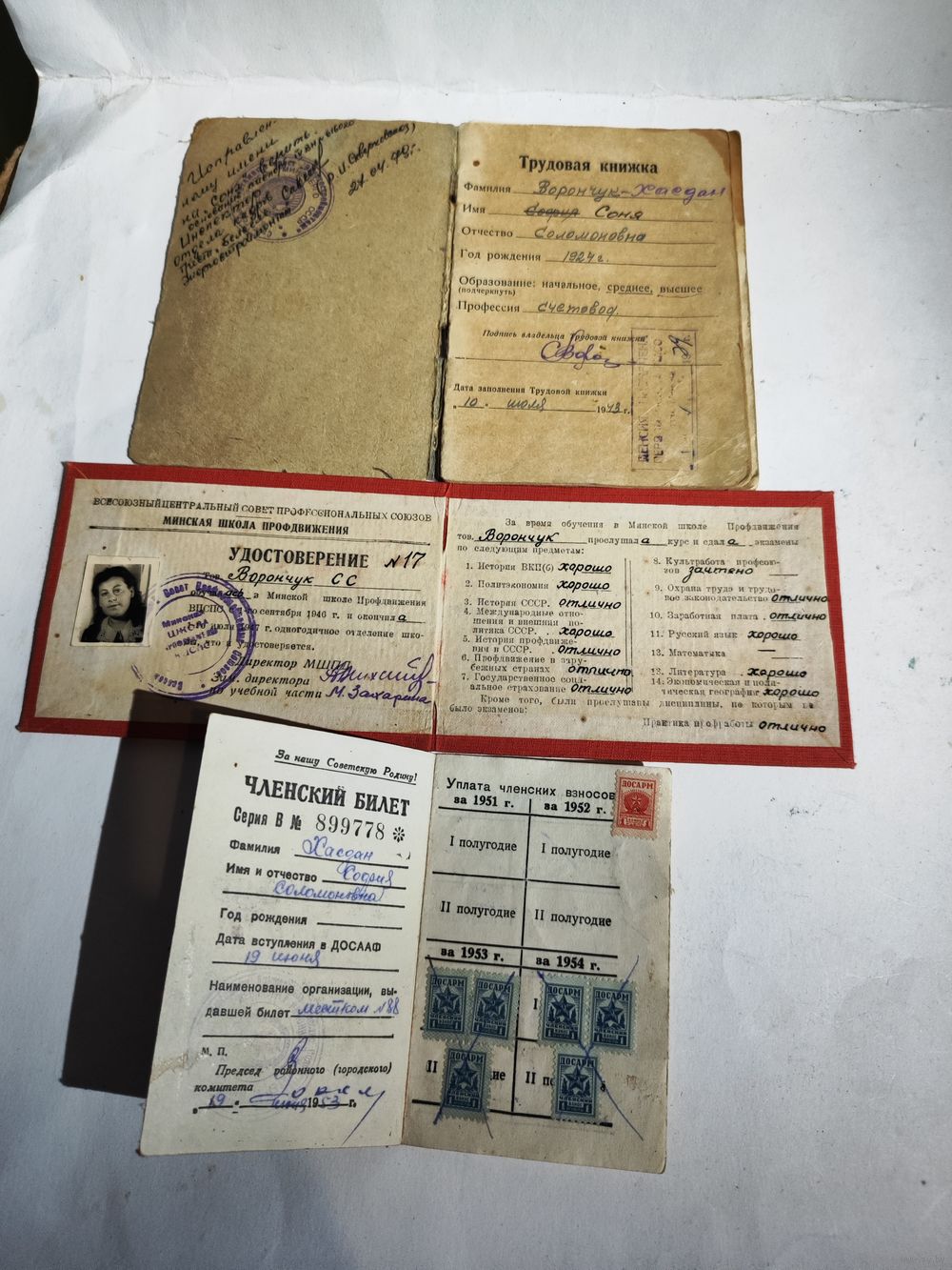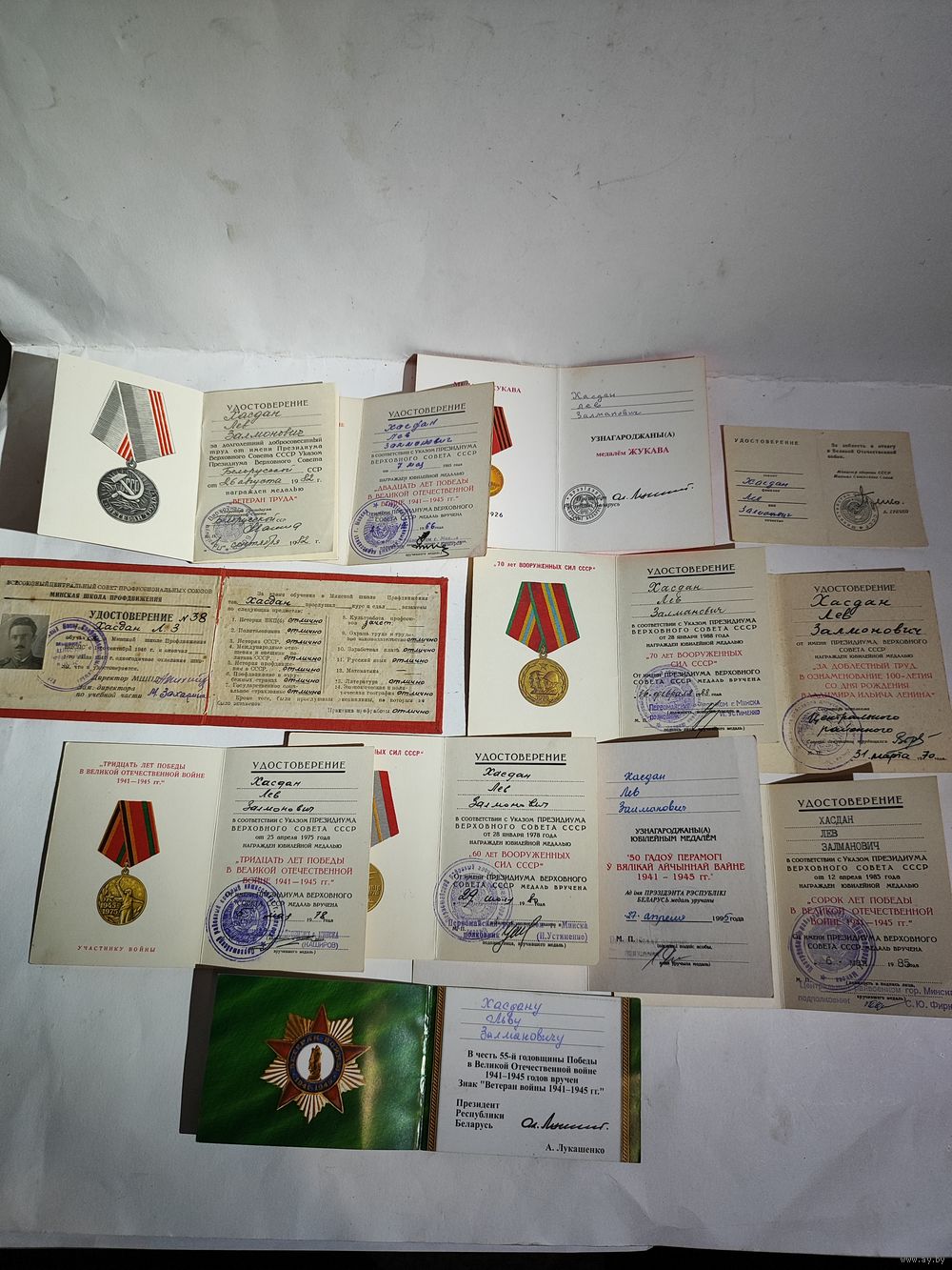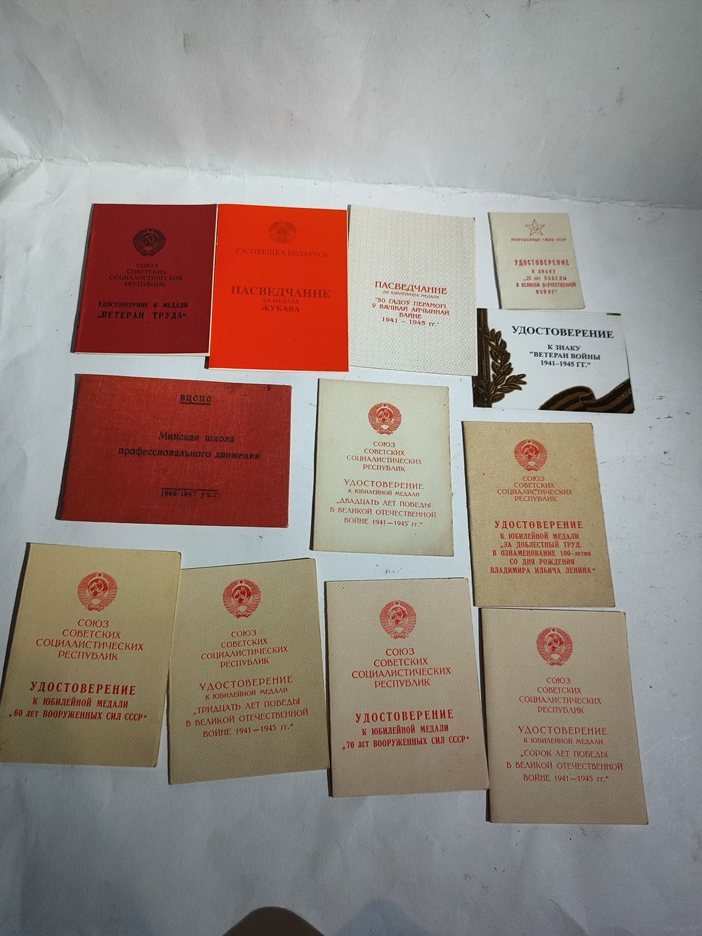 Документы на мужа и жену (3 шт.) Участников ВОВ. Также награждён часами. От НКА БСССР за отличную подготовку участников Всебелорусского слёта юных техников 1939 г. на ходу (есть отдельно на сайте). Состояние на фото.