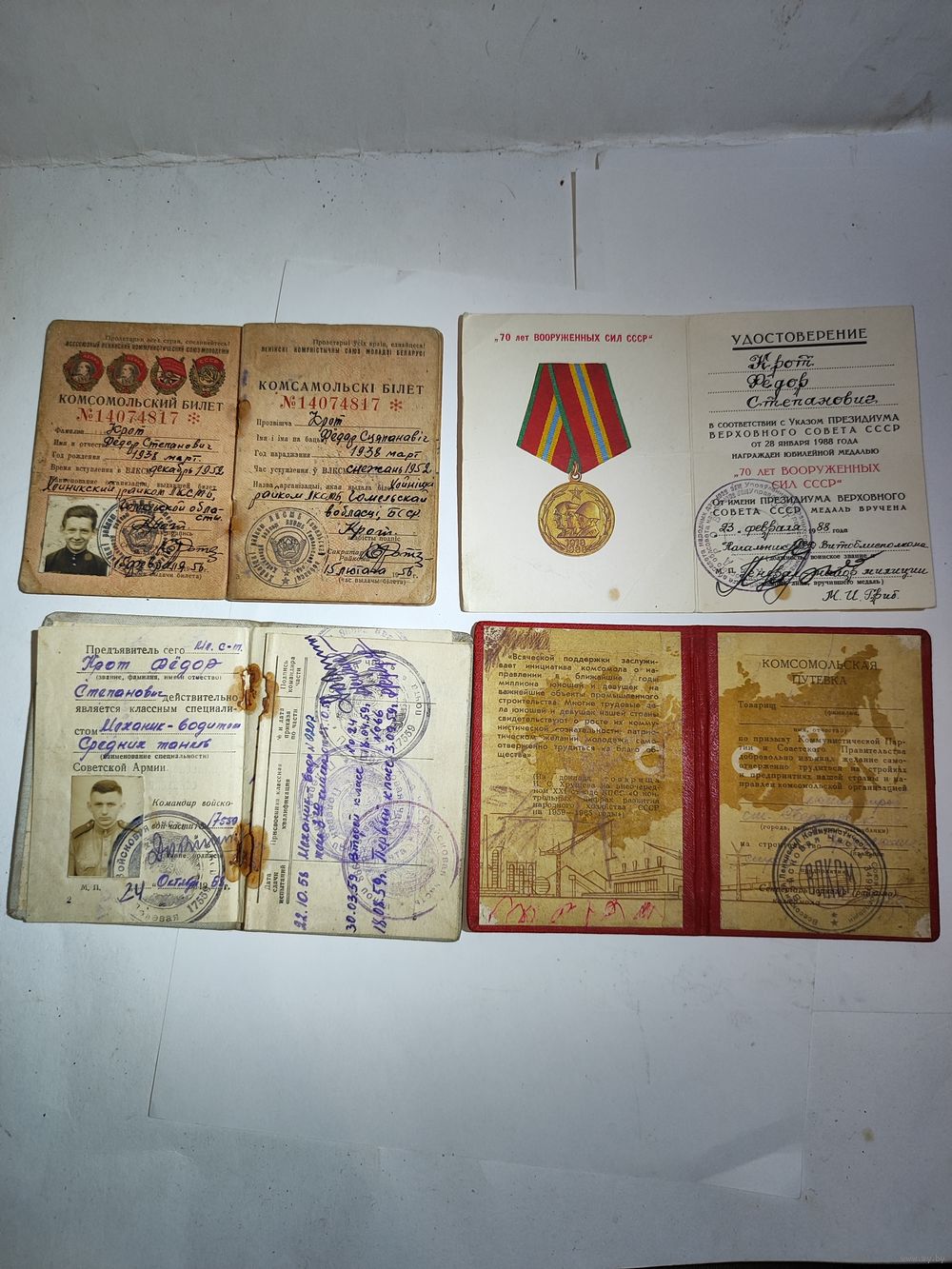Удостоверение 70 лет Вооружённых сил СССР подписано начальником Витебского УВД - генерал-майором милиции М.И.Грибом. Состояние на фото.