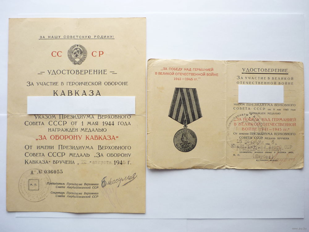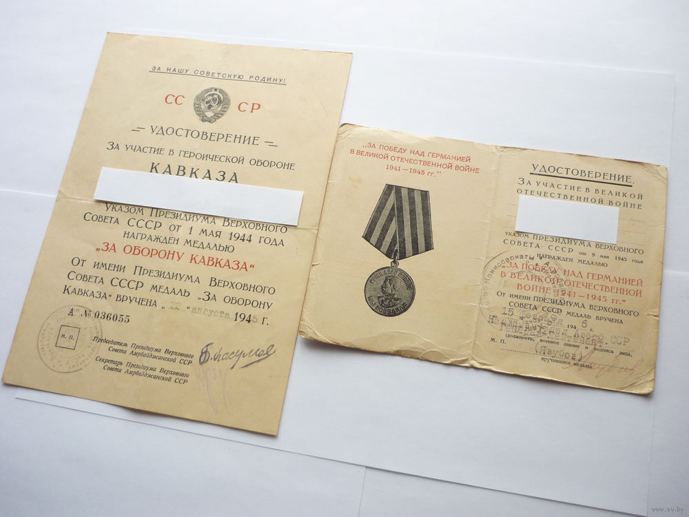 Документы на одного. Отличного состояния. Ранние. Периода ВОВ. Комплект. За оборону Кавказа и ЗПнГ.