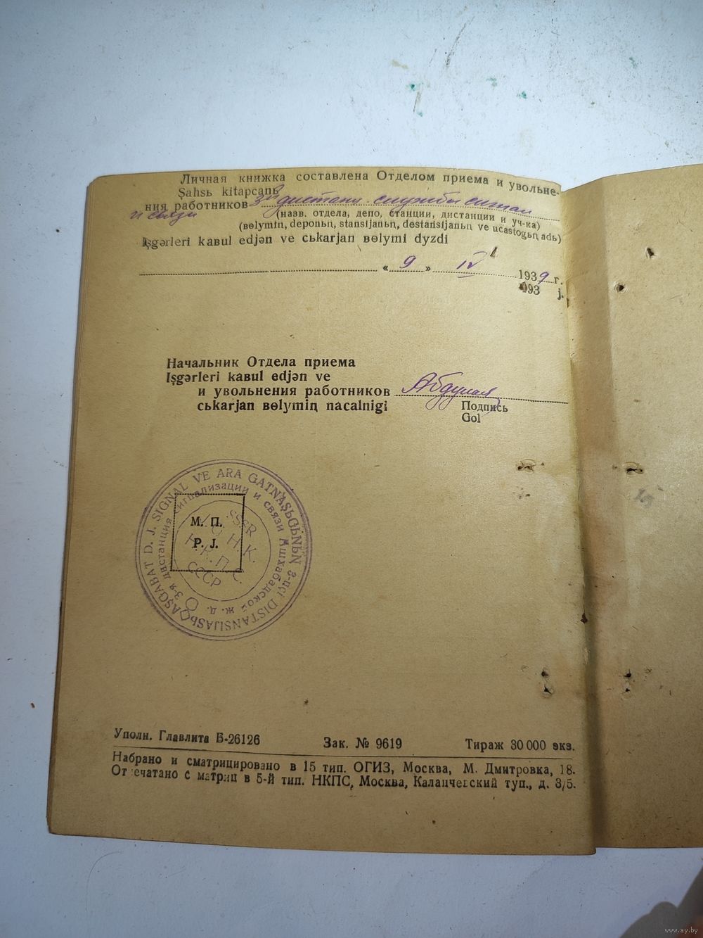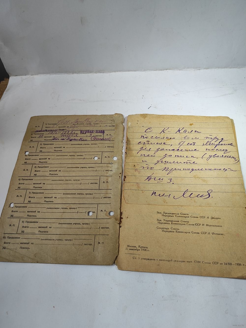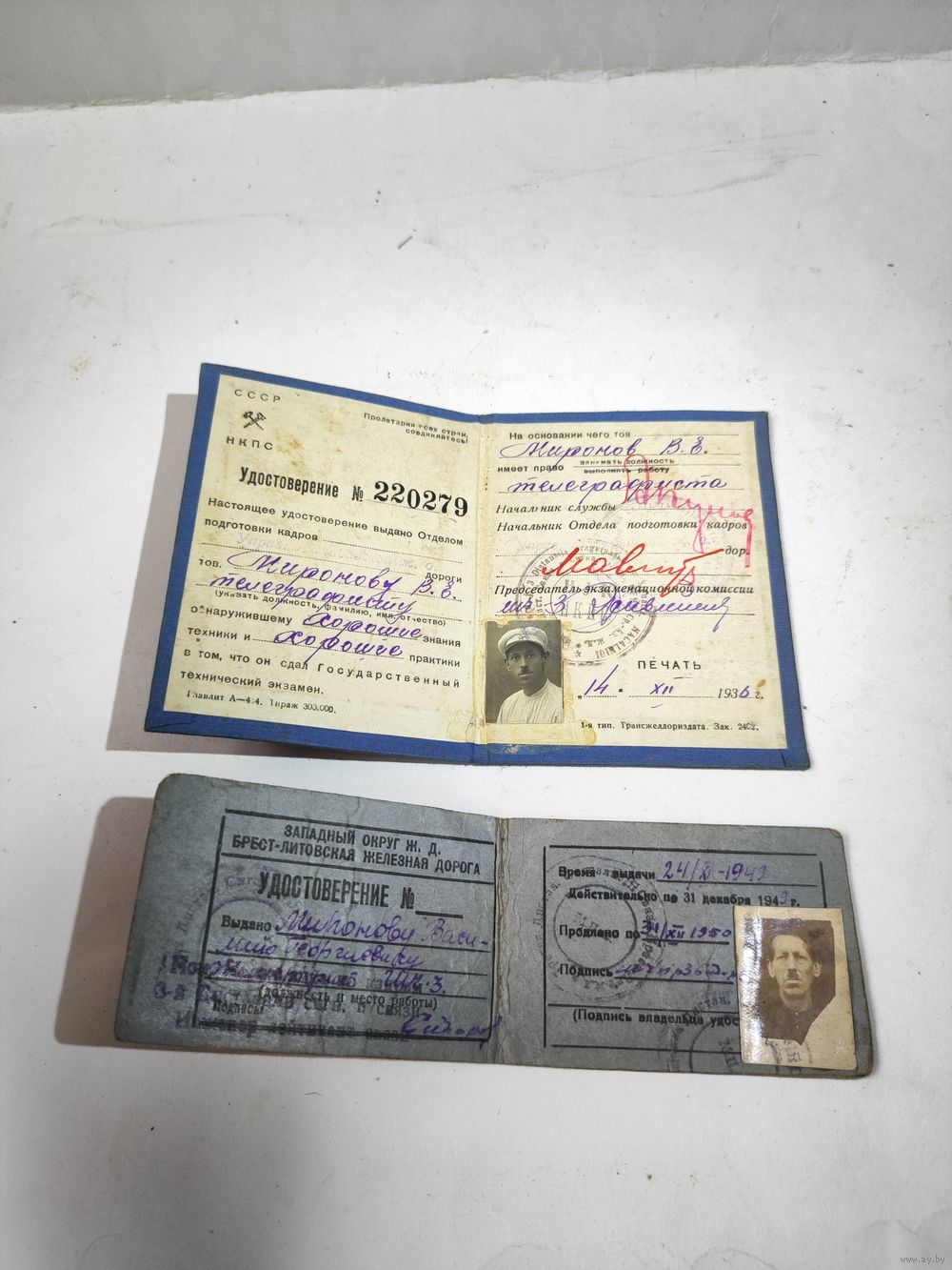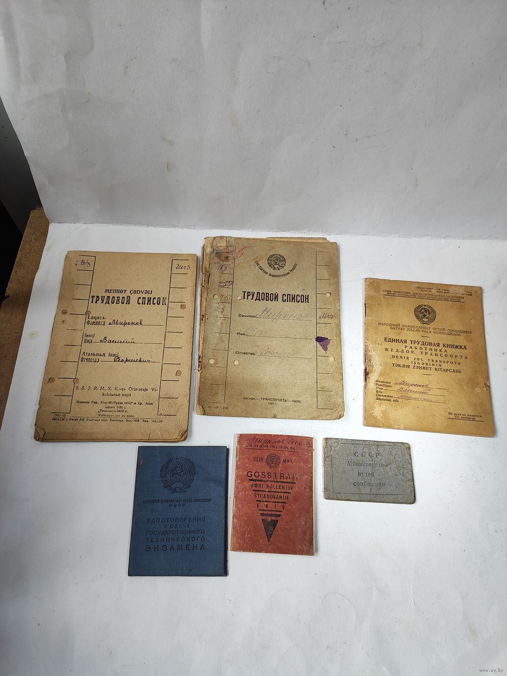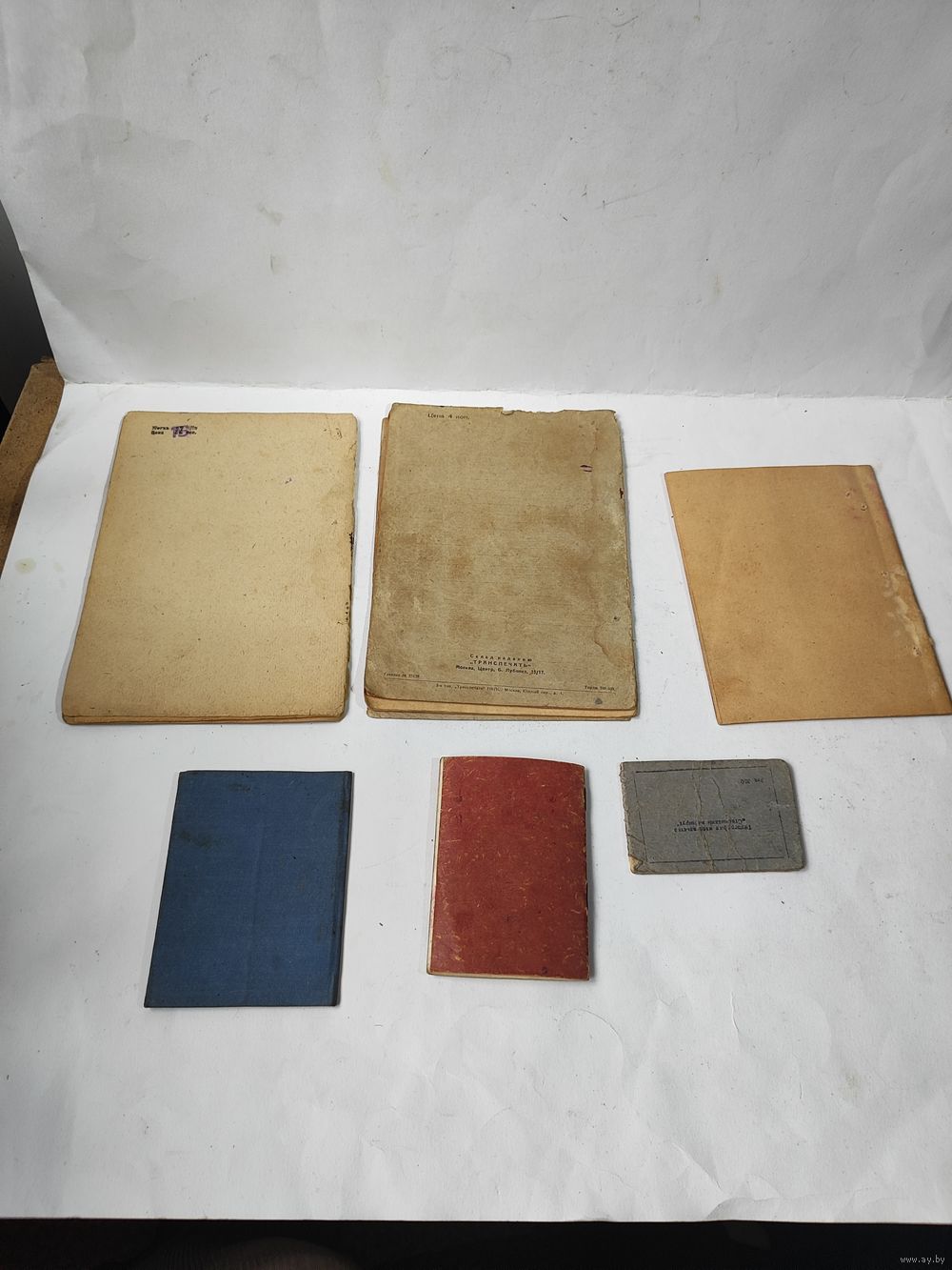 Шесть штук (страховое удостоверение-1941 г., удостоверение МПС-1949 г)-остальные 30-х годов. Состояние на фото(потёртости , пятна, труд.список ТРАНСПЕЧАТЬ-27 г.,разошёлся на 3-и части по корешку.)