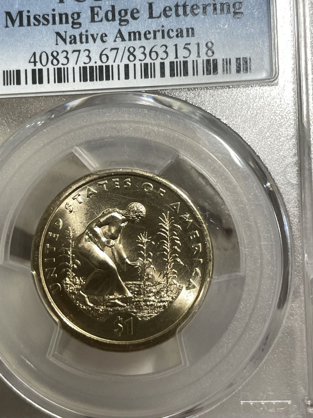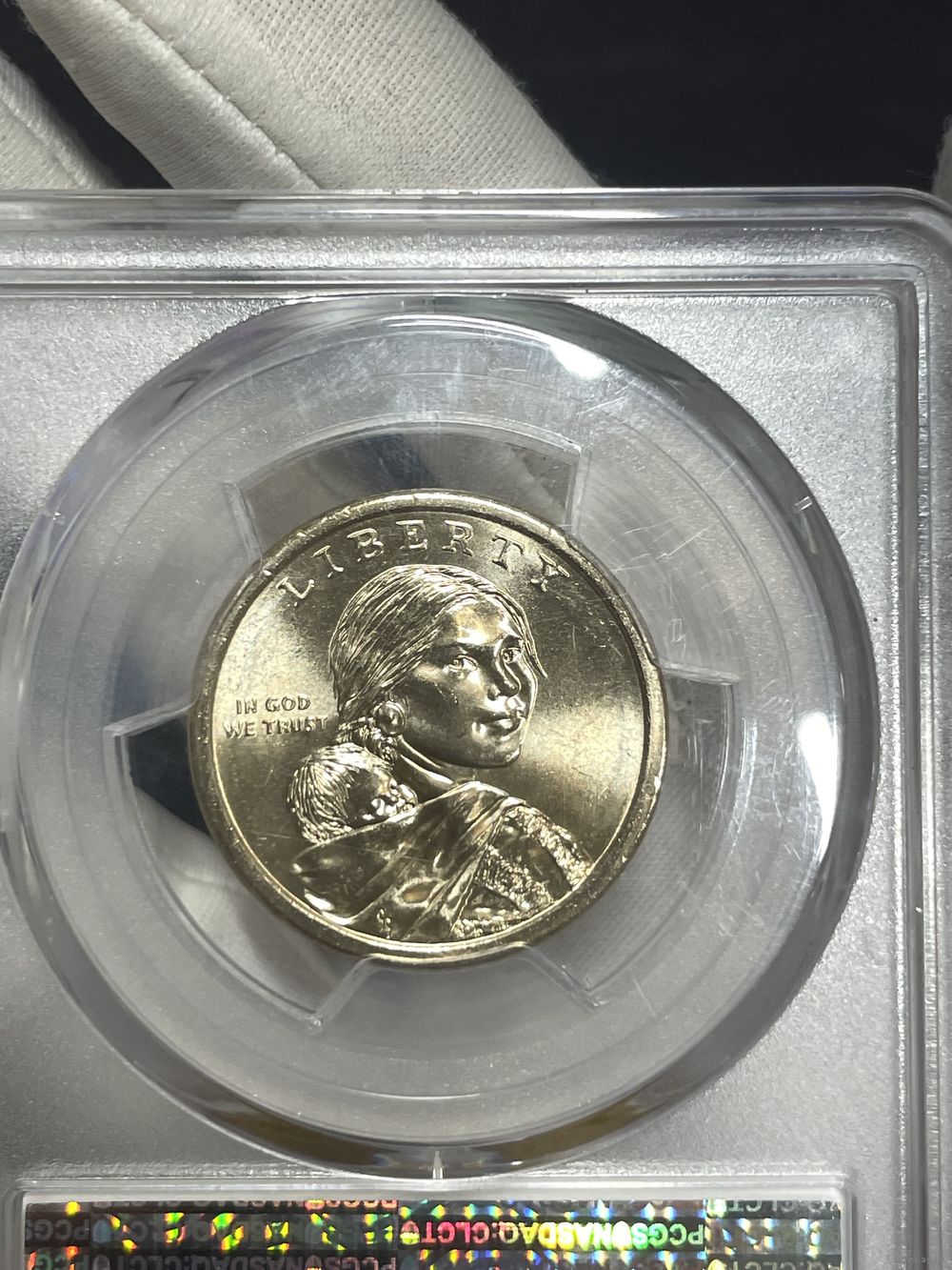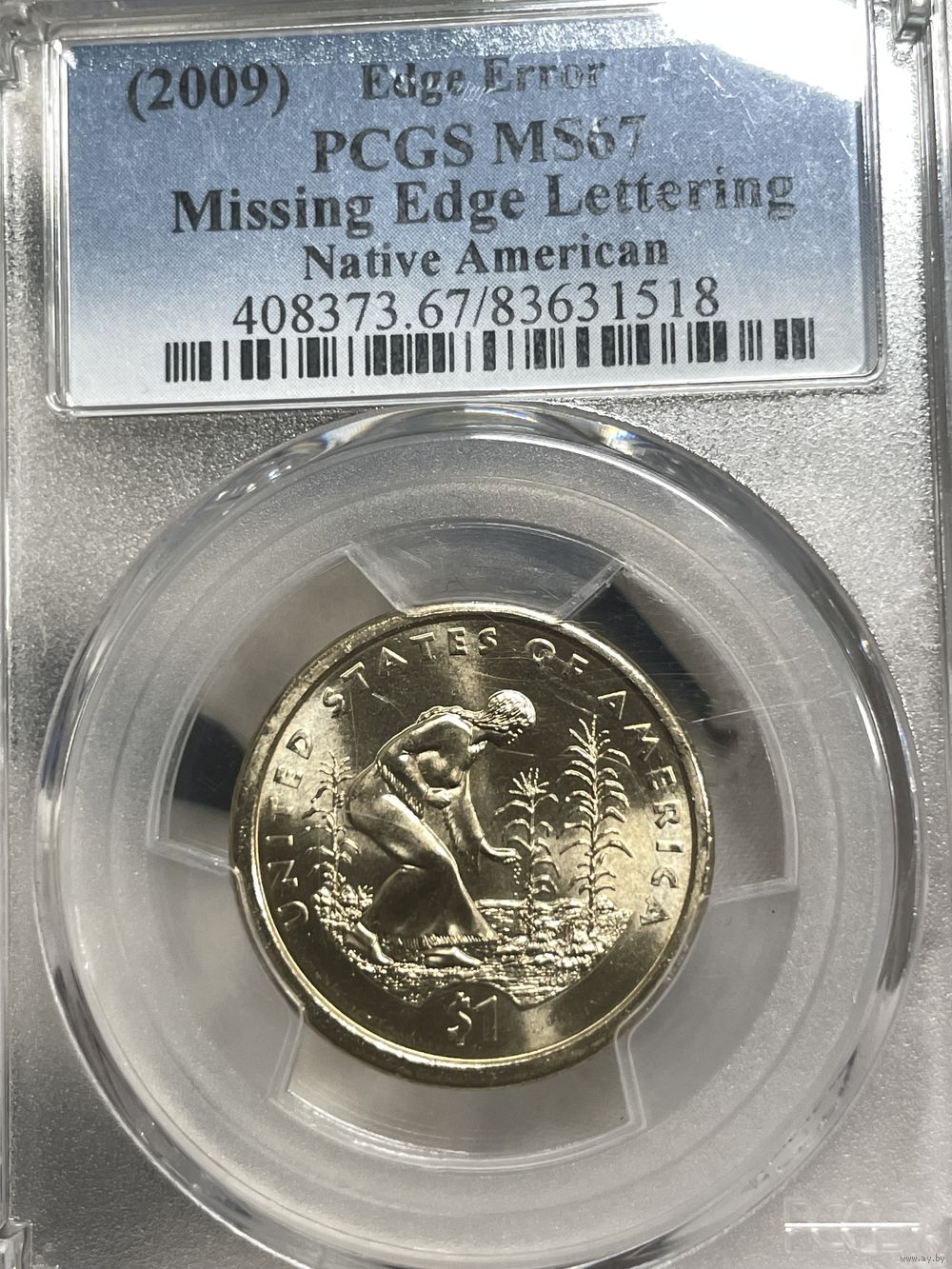 Доллар 2009 pcgs ms 67 брак ! редкая вещь! (царапки на слабе )в ярком шб!
