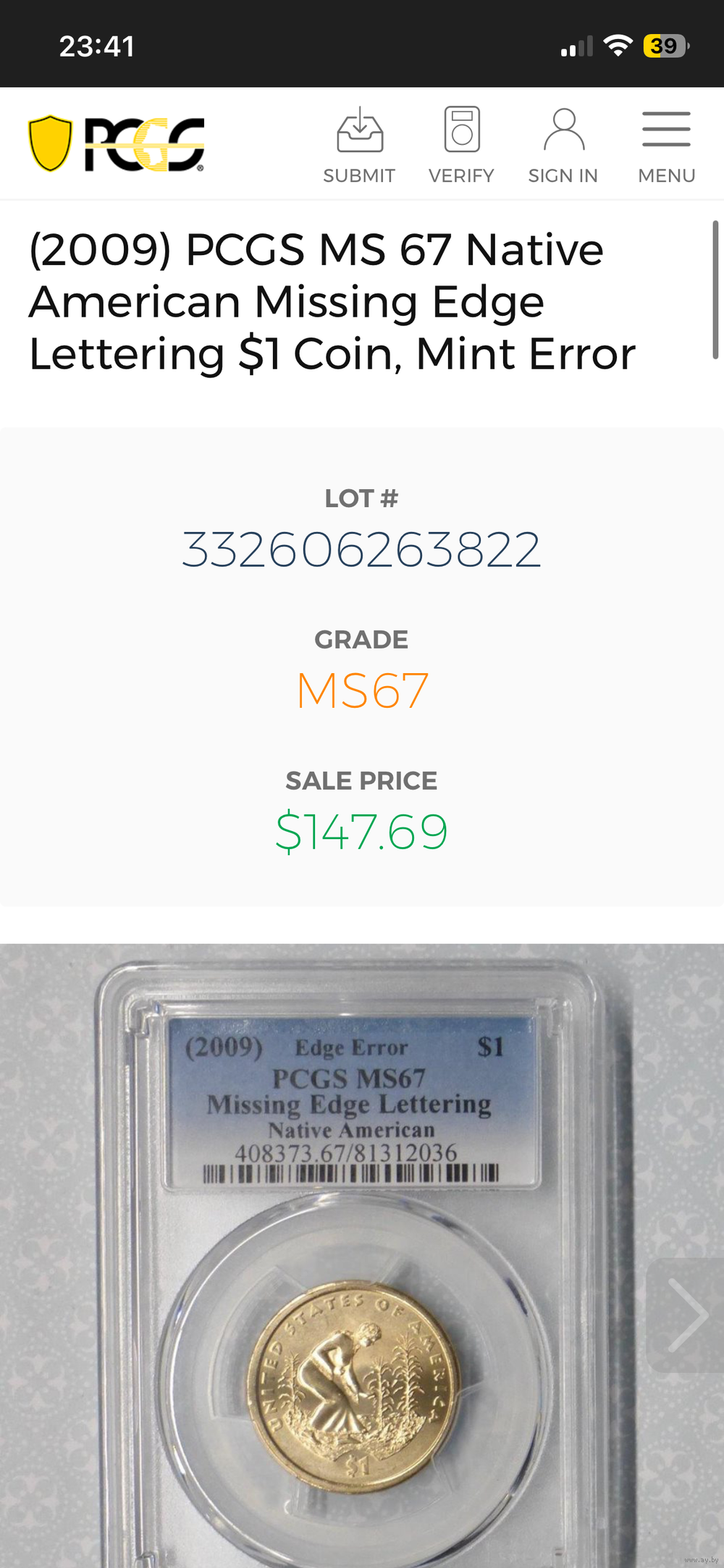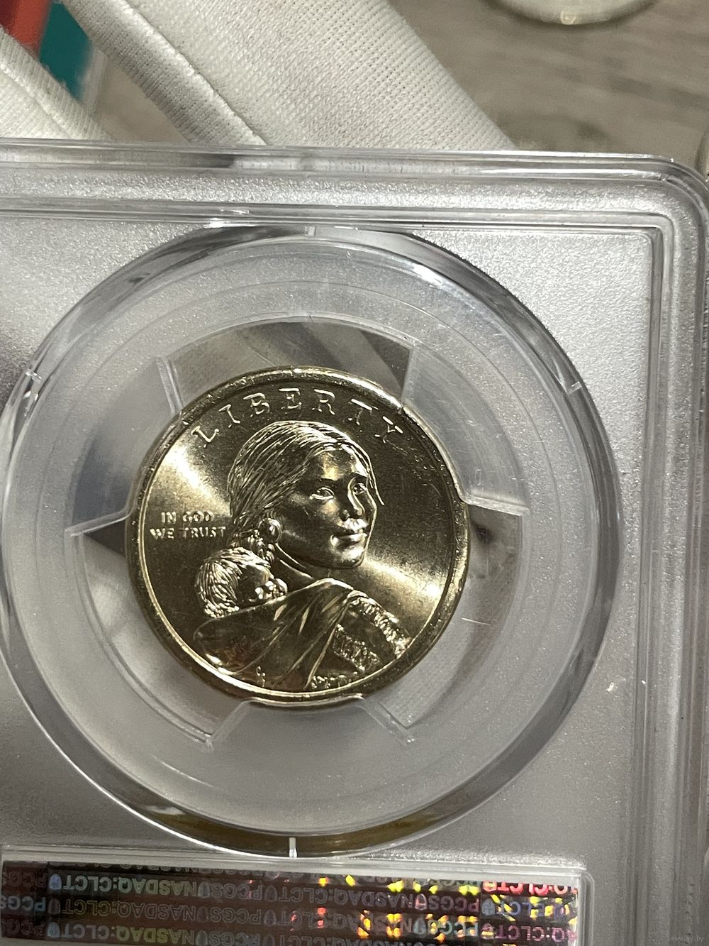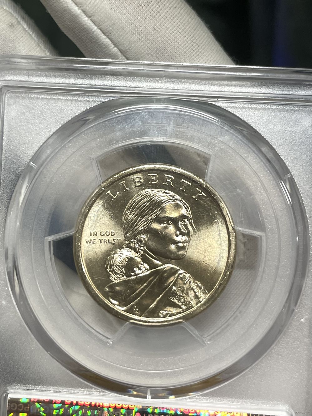 Доллар 2009 pcgs ms 67 брак ! редкая вещь! (царапки на слабе )в ярком шб!