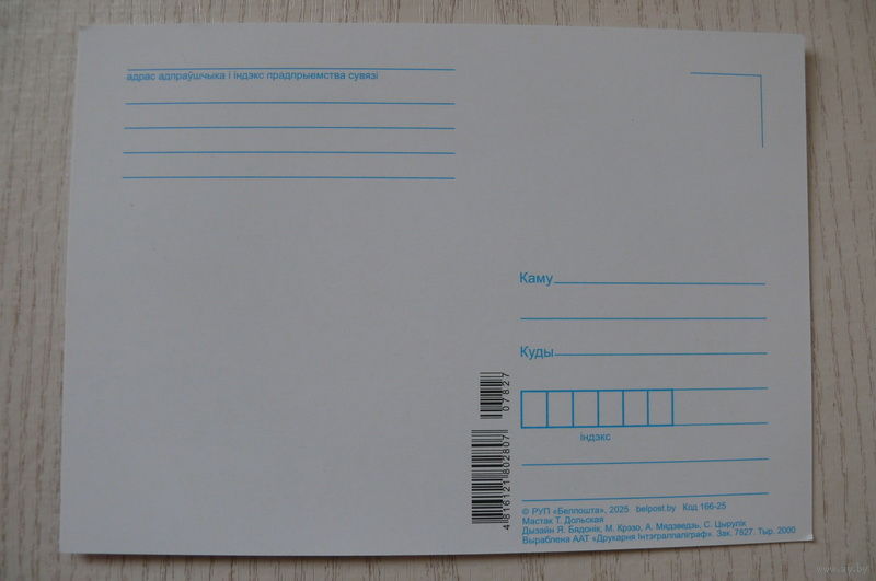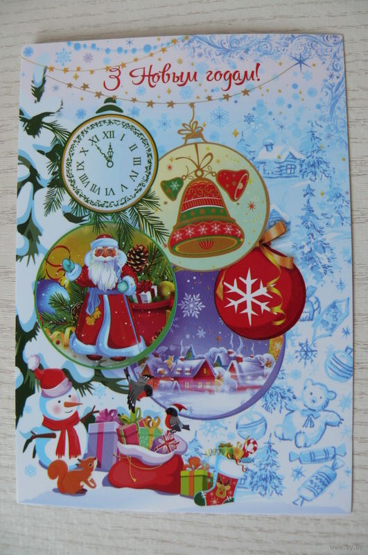 Дольская Т., С Новым годом! (на белорусском языке); 2025, чистая (снеговик, часы, изд. "Белпочта").